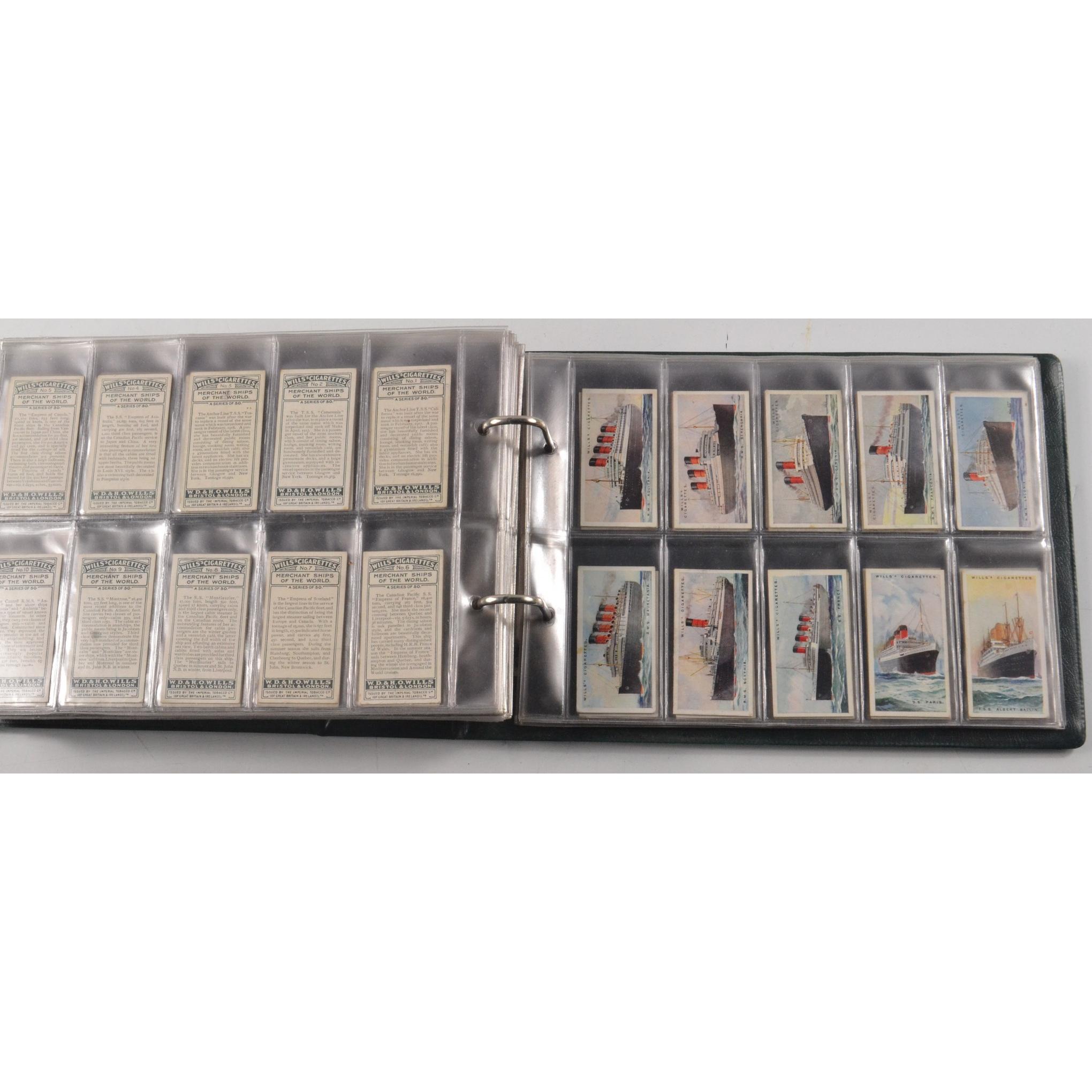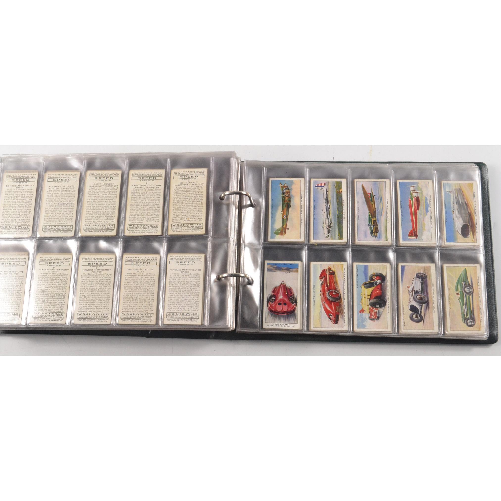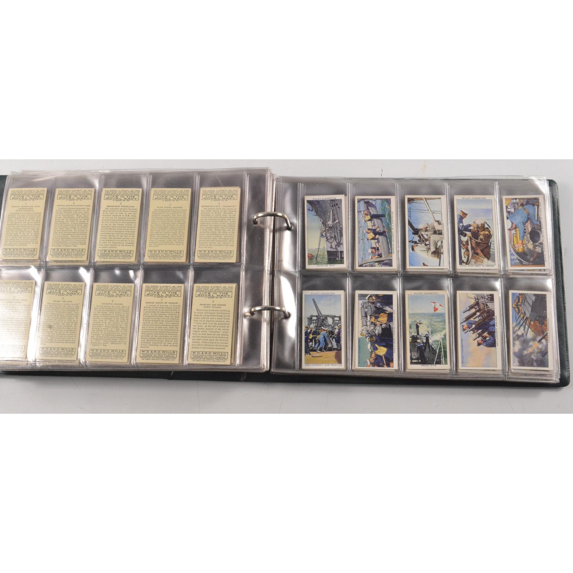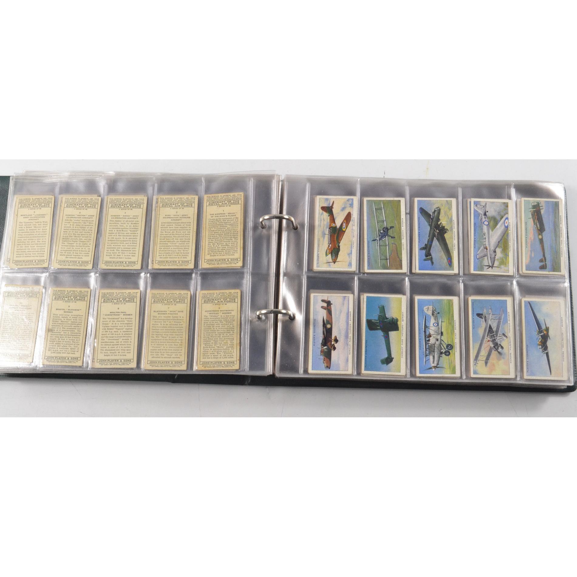 Large (over 550) Vintage collection of cigarette badges in a bound clip folder with plastic sleeve individual pockets of 10 cards per sleeve, to include Army Badges series 48 issued by GALLAHER LTD 38 cards, also Drum Banners and Cap Badges issued by John Player & Sons 50 cards, also Uniforms of the Territorial Army 50 cards, also JOHN PLAYER & SONS Military Uniforms of the British Empire Overseas 50 cards, also RAF Badges 40 cards, also JOHN PLAYER & SONS Aircraft of the Royal Air Force 50 cards, also WILLS Ship's Badges x 50 cards, also JOHN PLAYER & SONS Modern Naval Craft x50 cards, also WILLS Life In The Royal Navy x50 cards, also WILLS Speed x 50 cards, also WILLS Merchant Ships of the World x 50 cards, also JOHN PLAYER & SONS International Air Liners x 50 cards