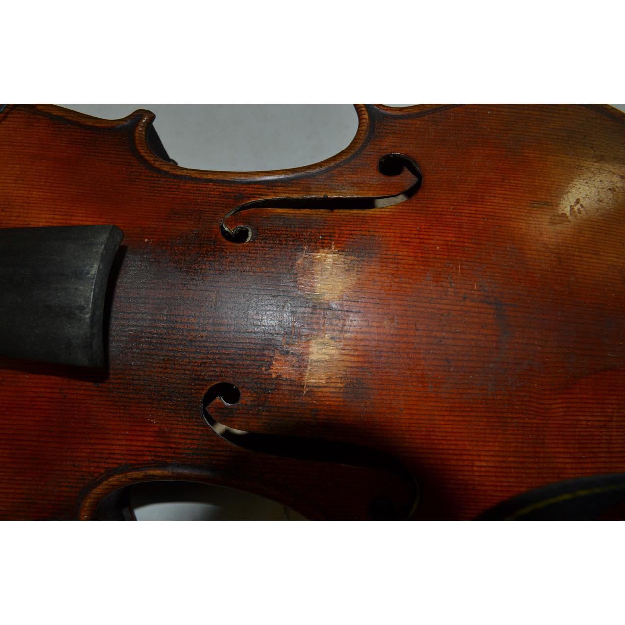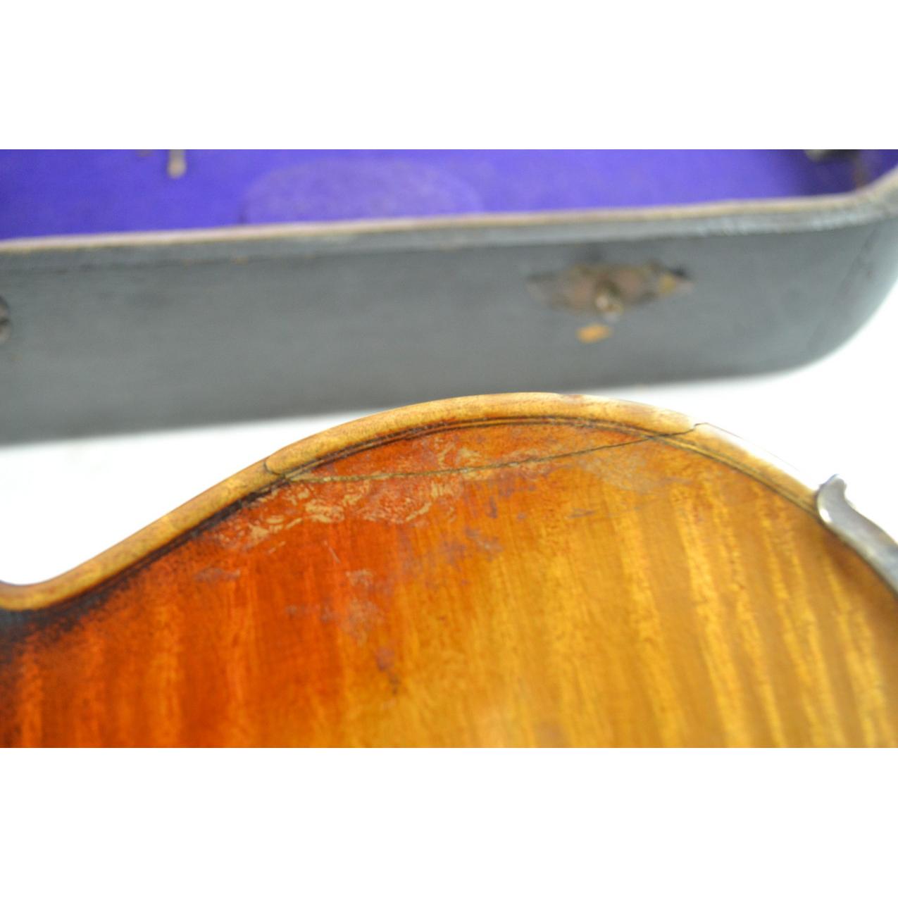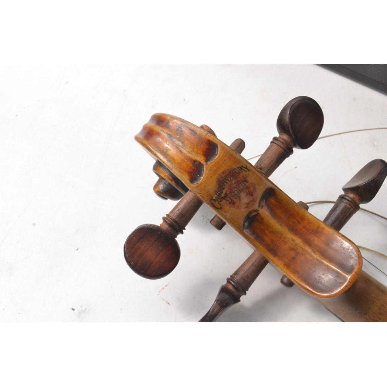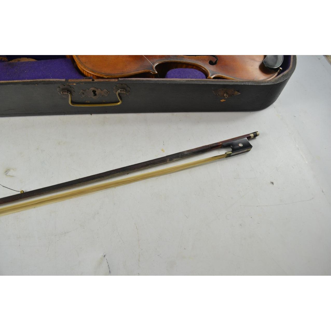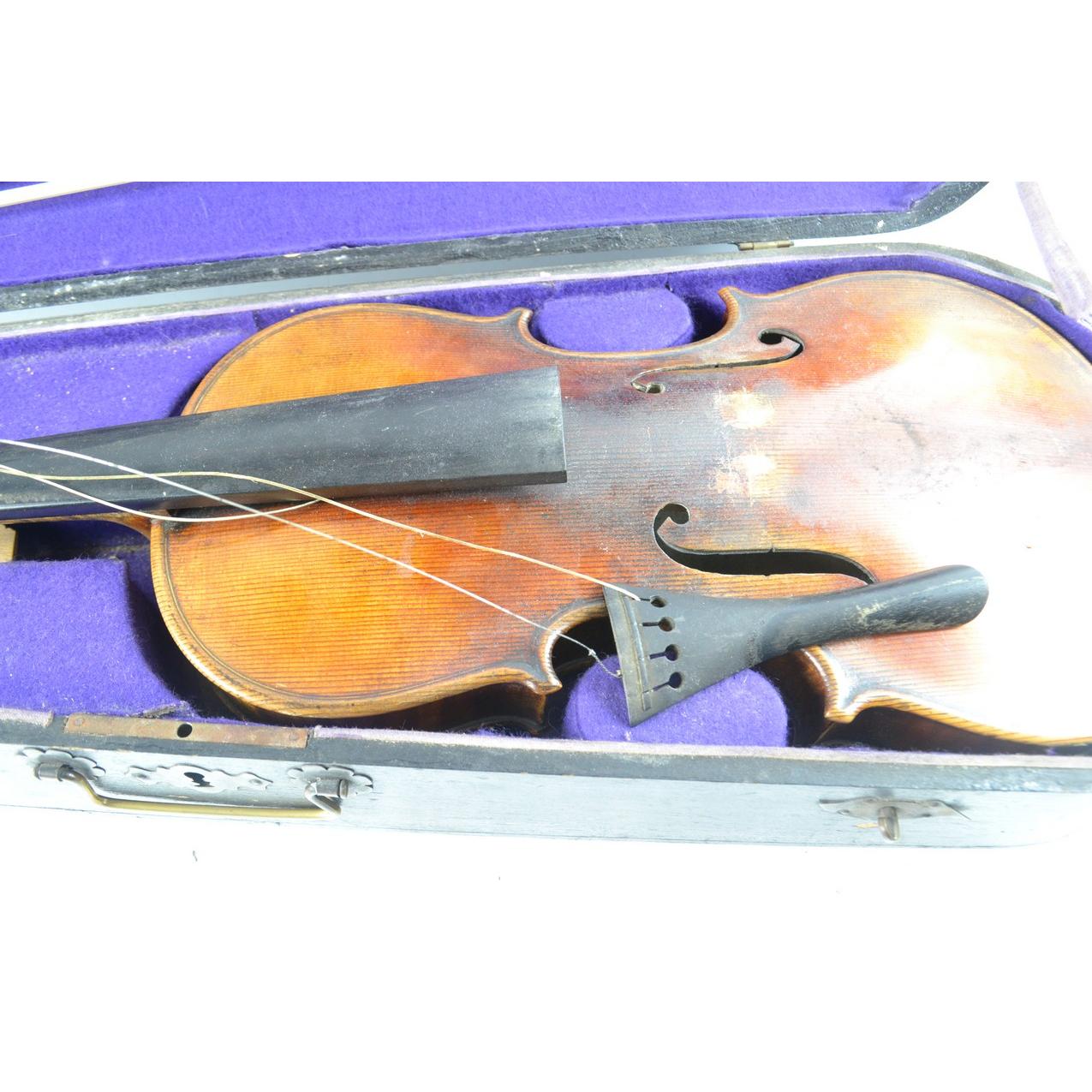 Violin with Stradivarius? label, with bows and case in need of tlc