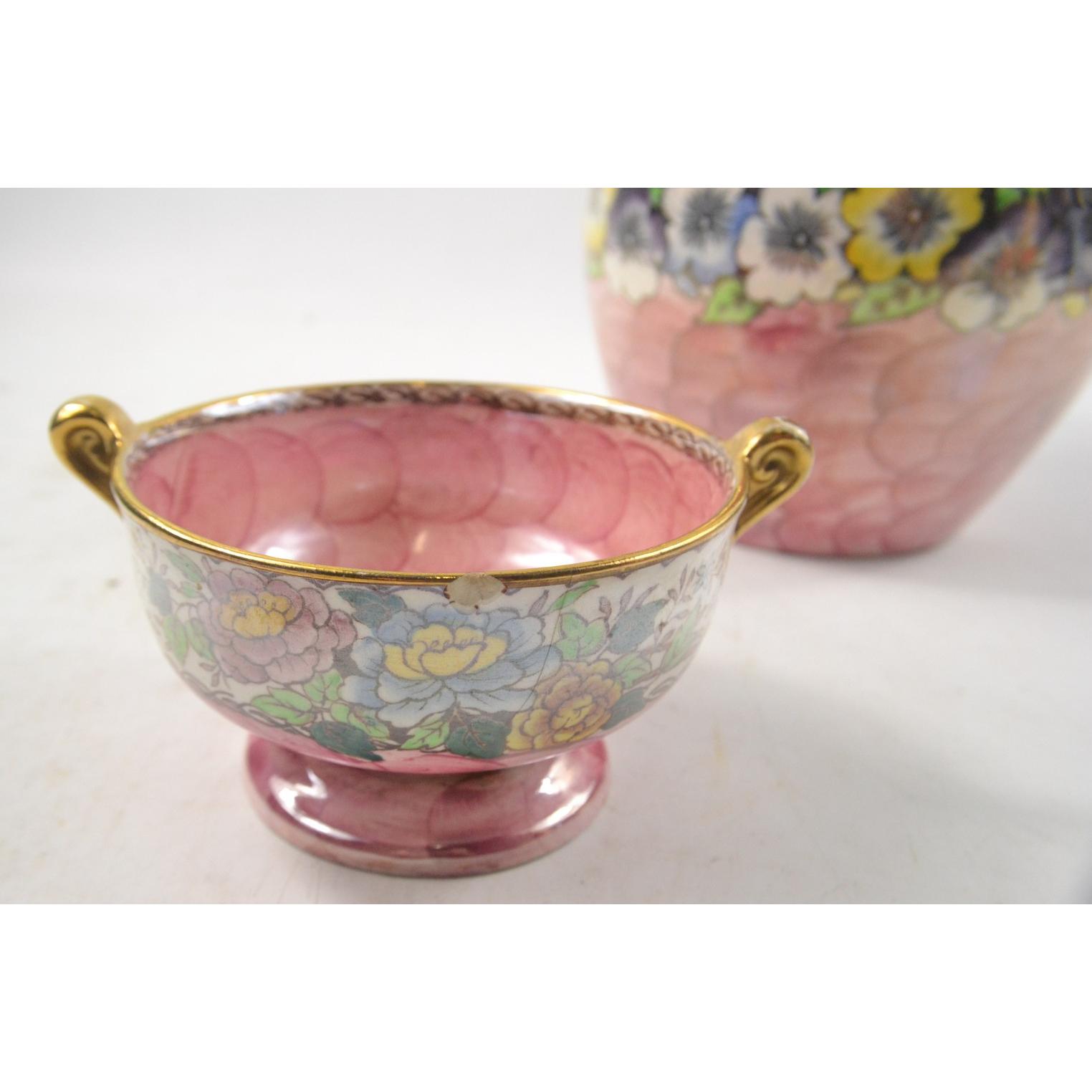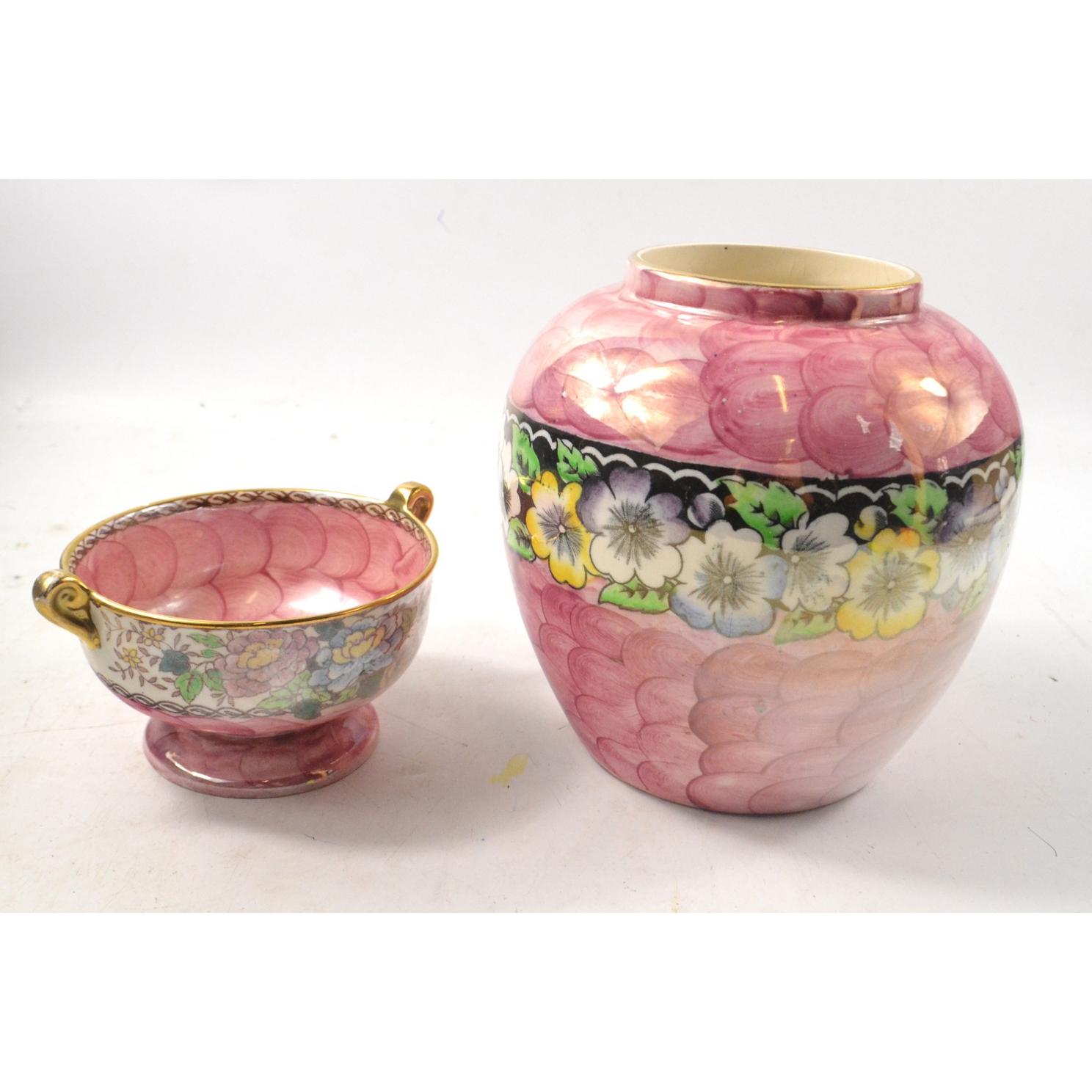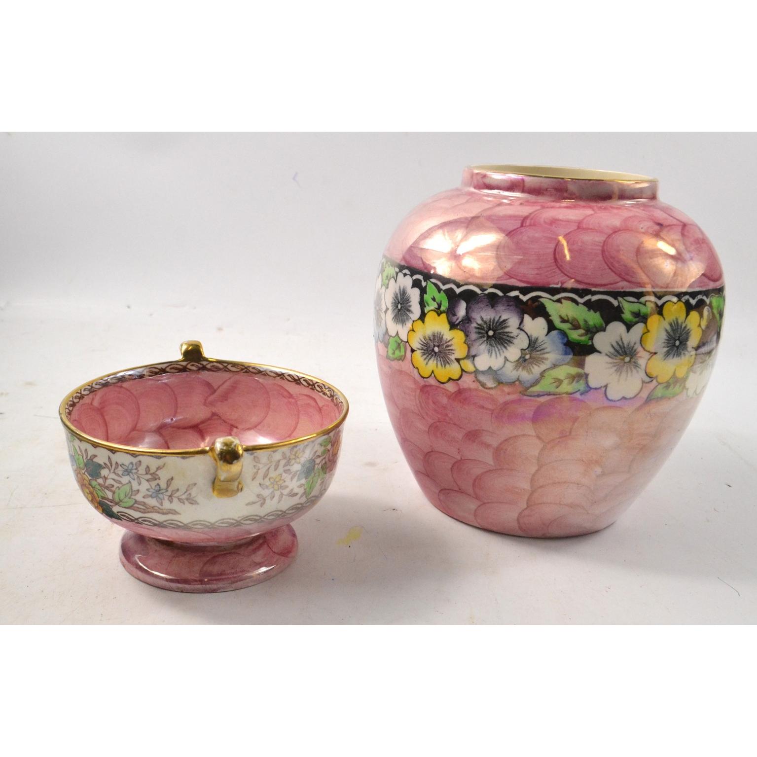 Two pieces of lustre MALING WARE to include a vase16cm high in and a small bowl 6cm H( small chip in edge f rim) Approx 2 pieces