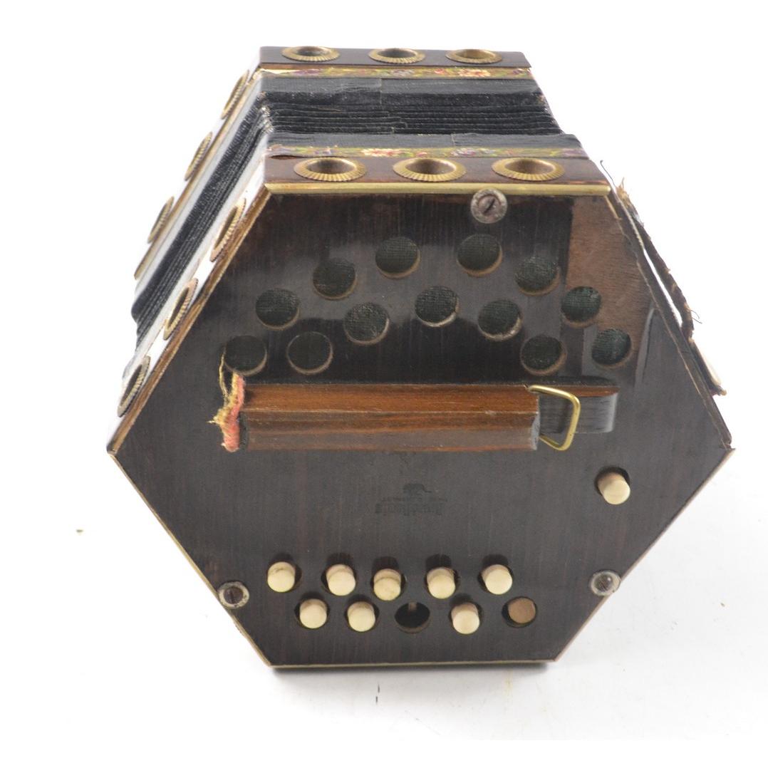 Vintage squeeze box requires tlc and a lidded rosewood jewellery boxApprox 2 pieces