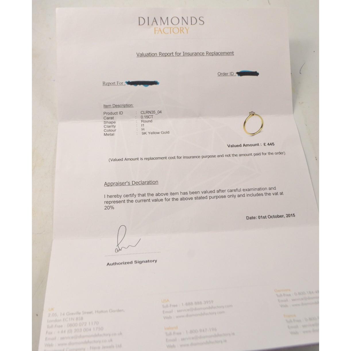 DIAMOND FACTORY 375 stamped yellow gold and diamond Inset ring size M/N with insuranceGross weight approx 1.77g