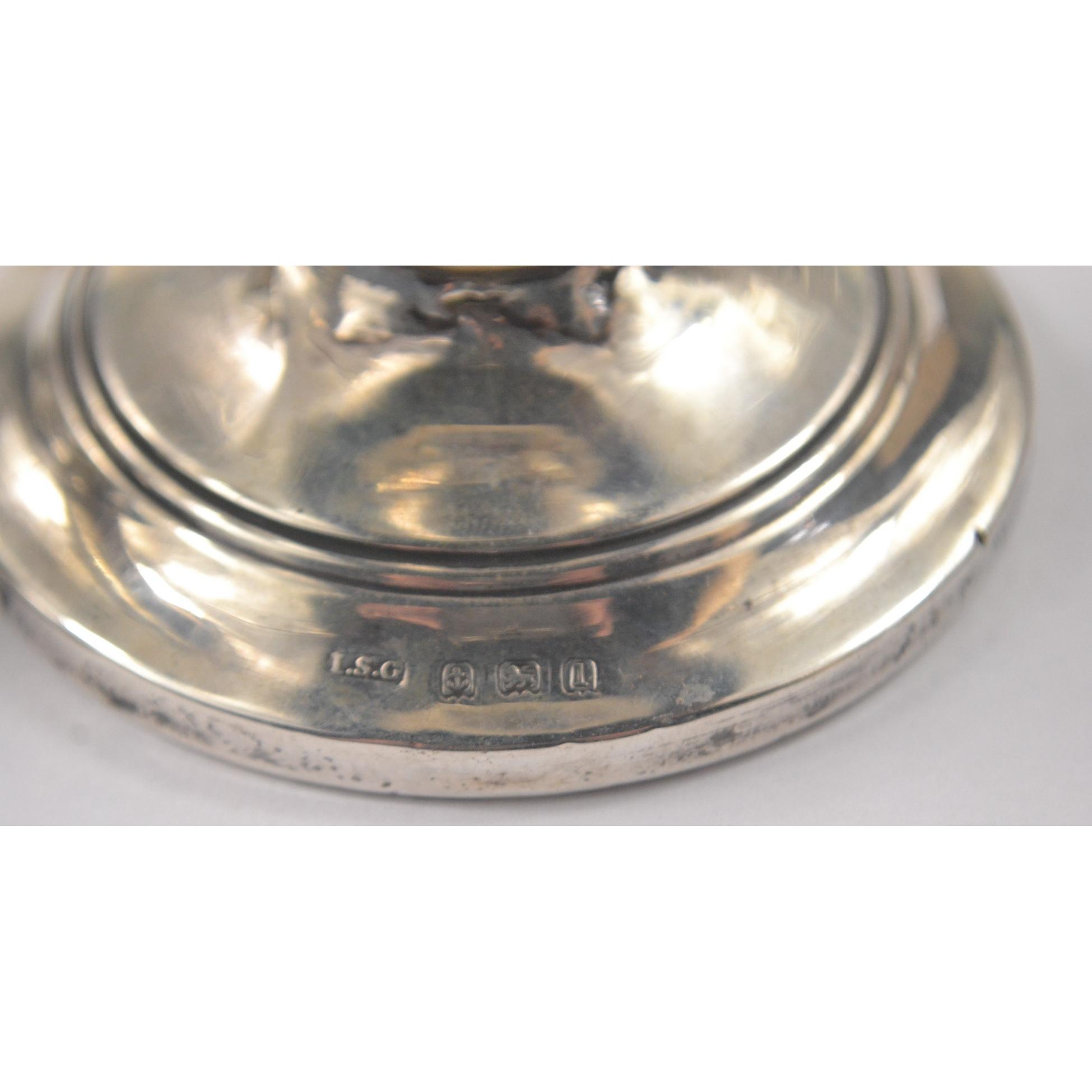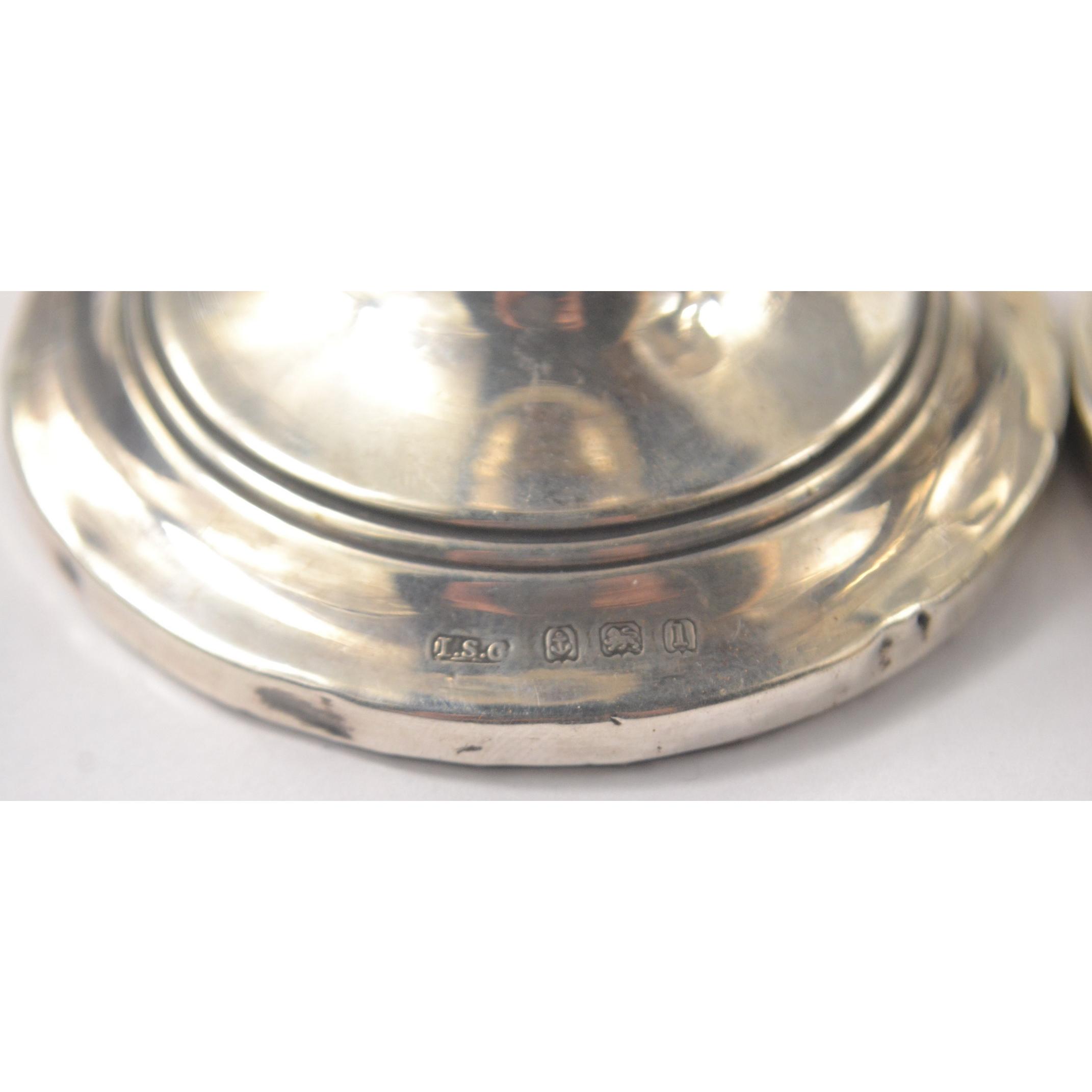 A pair of small Hallmarked candle sticks 10cm height gross weight shownGross weight approx 170gApprox 2 pieces