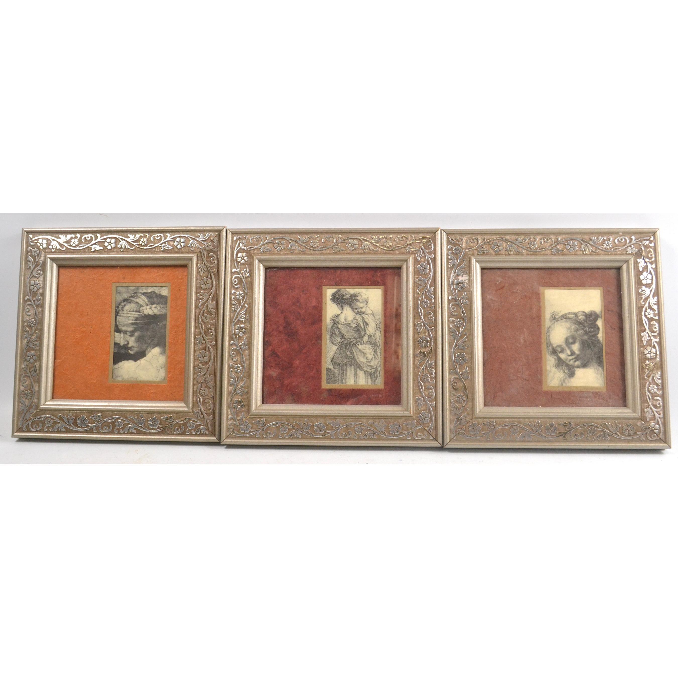A trio framed REGENCY style character prints in really nice frames 20cm square(frame sizes)