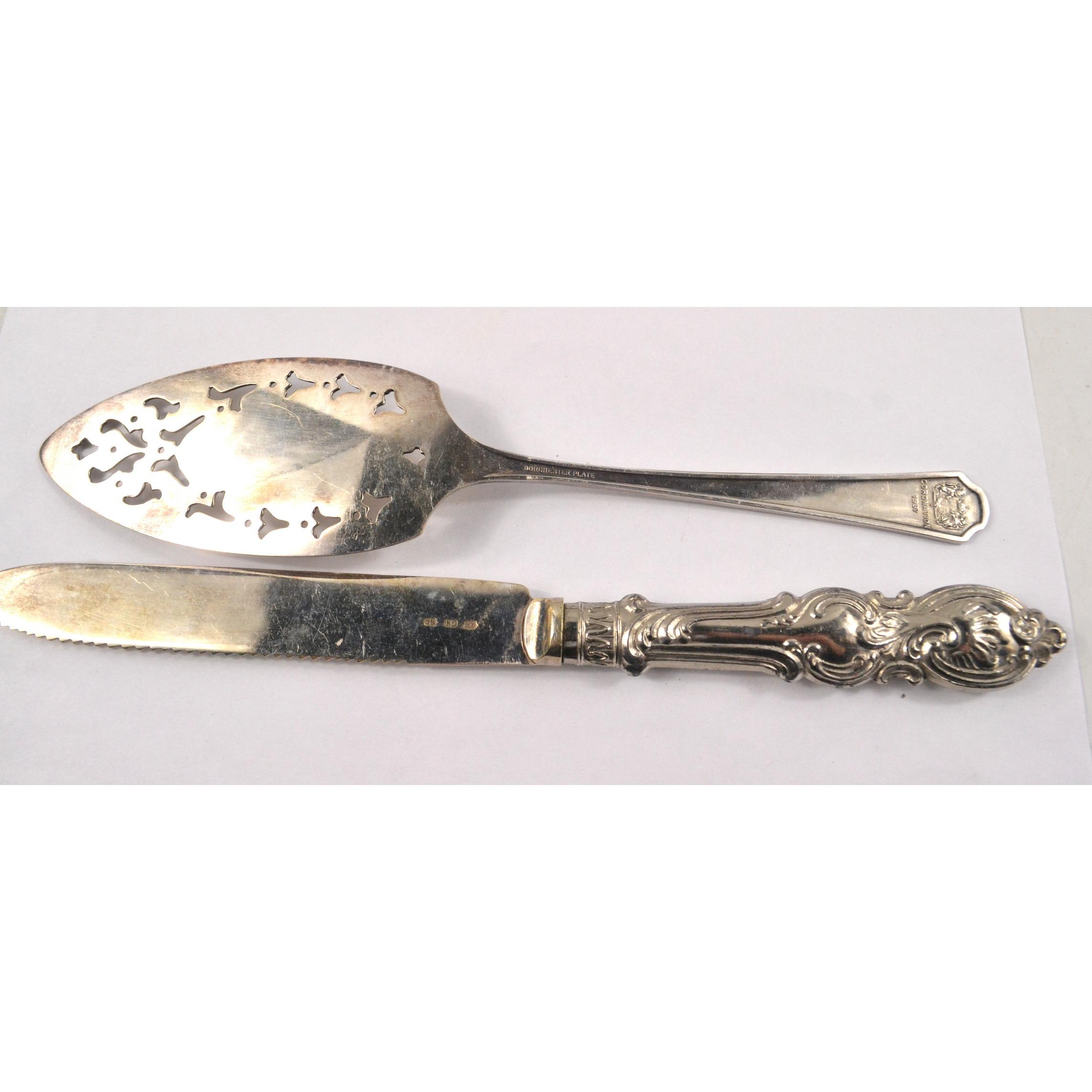A 1937 EP Coronation cake slice with an ornate EP Cake knife