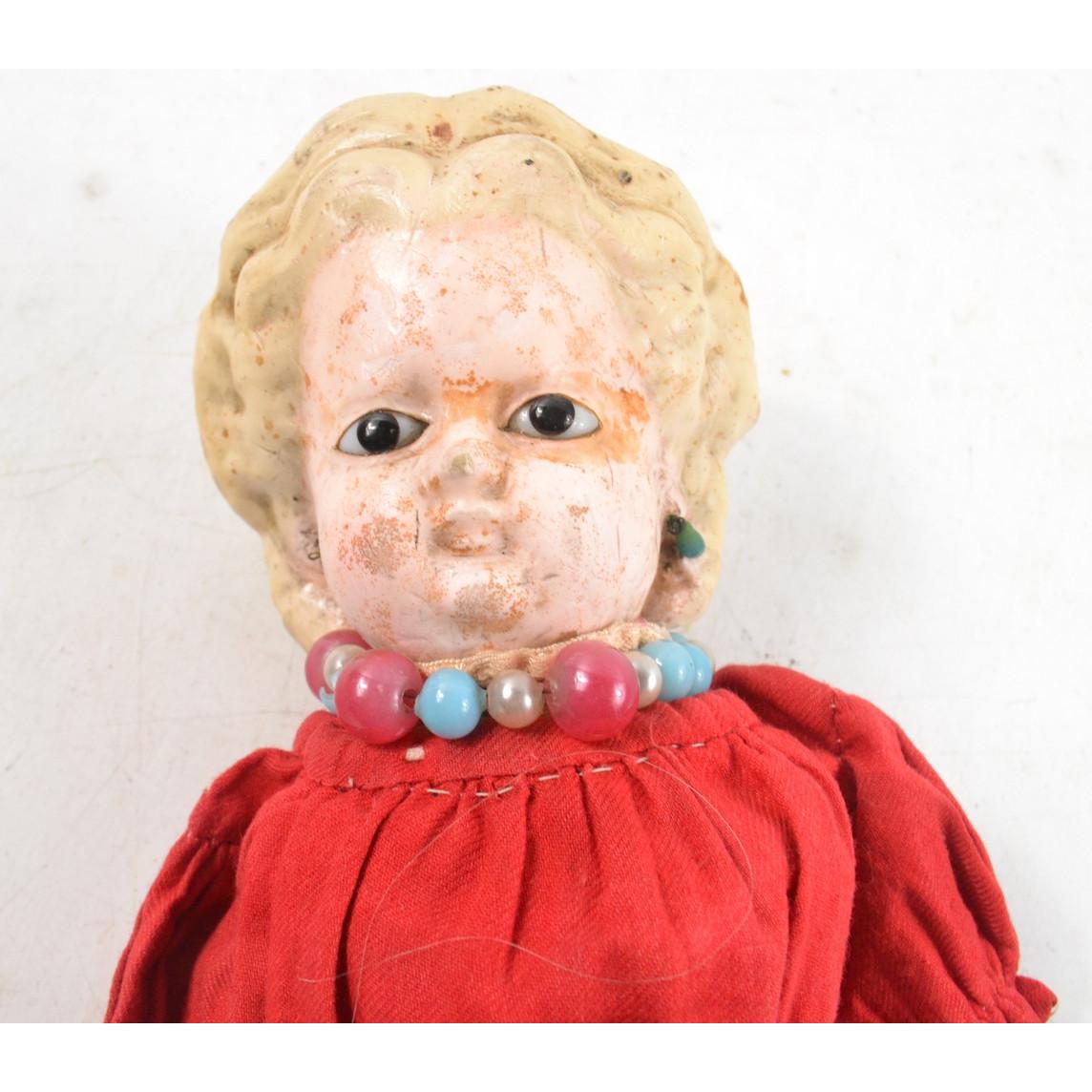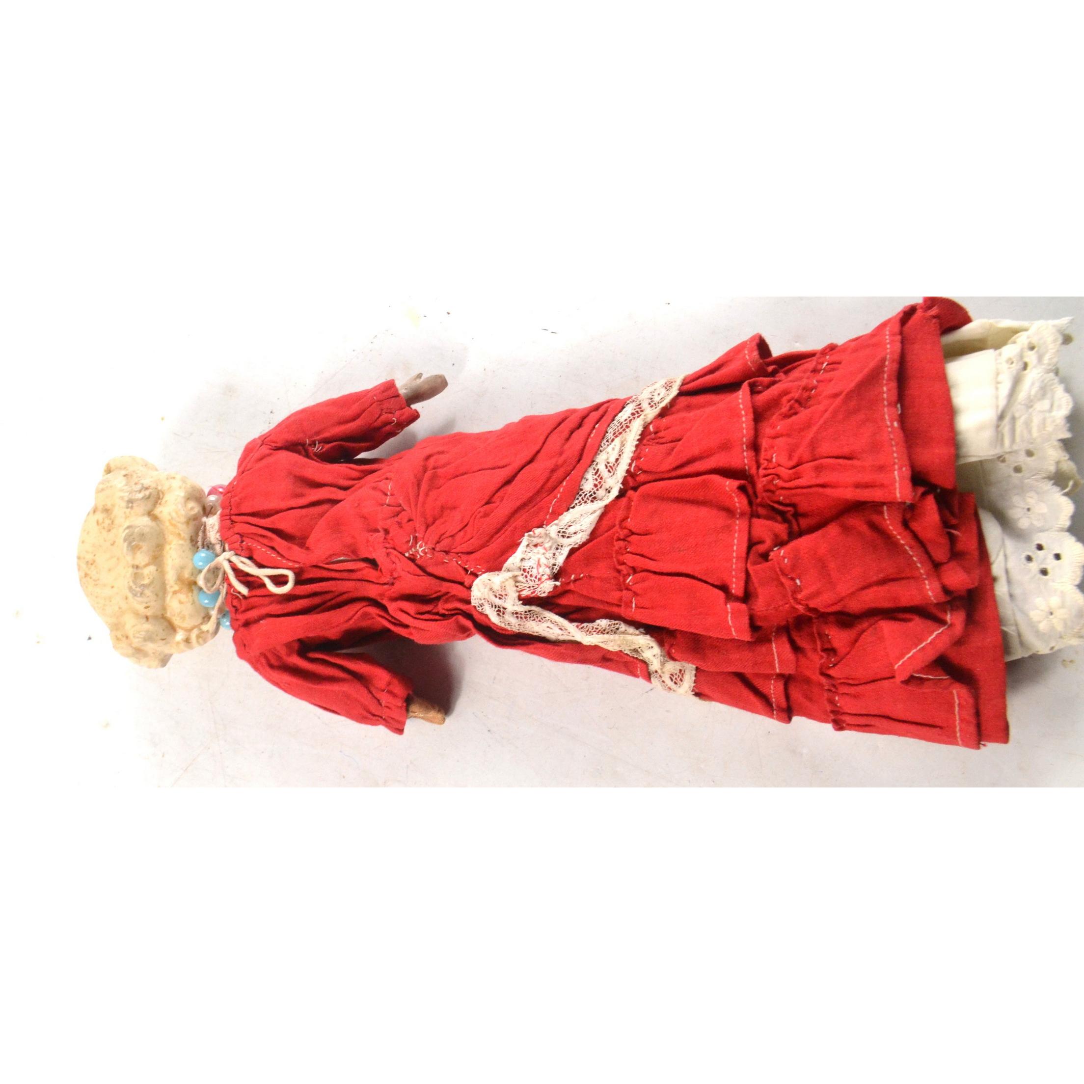 A FRENCH vintage papermarche doll in red dress