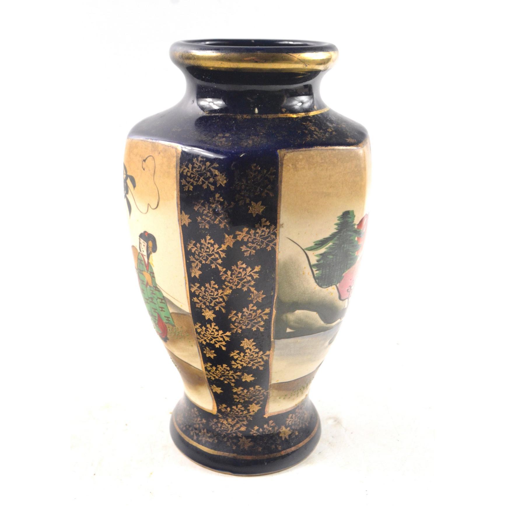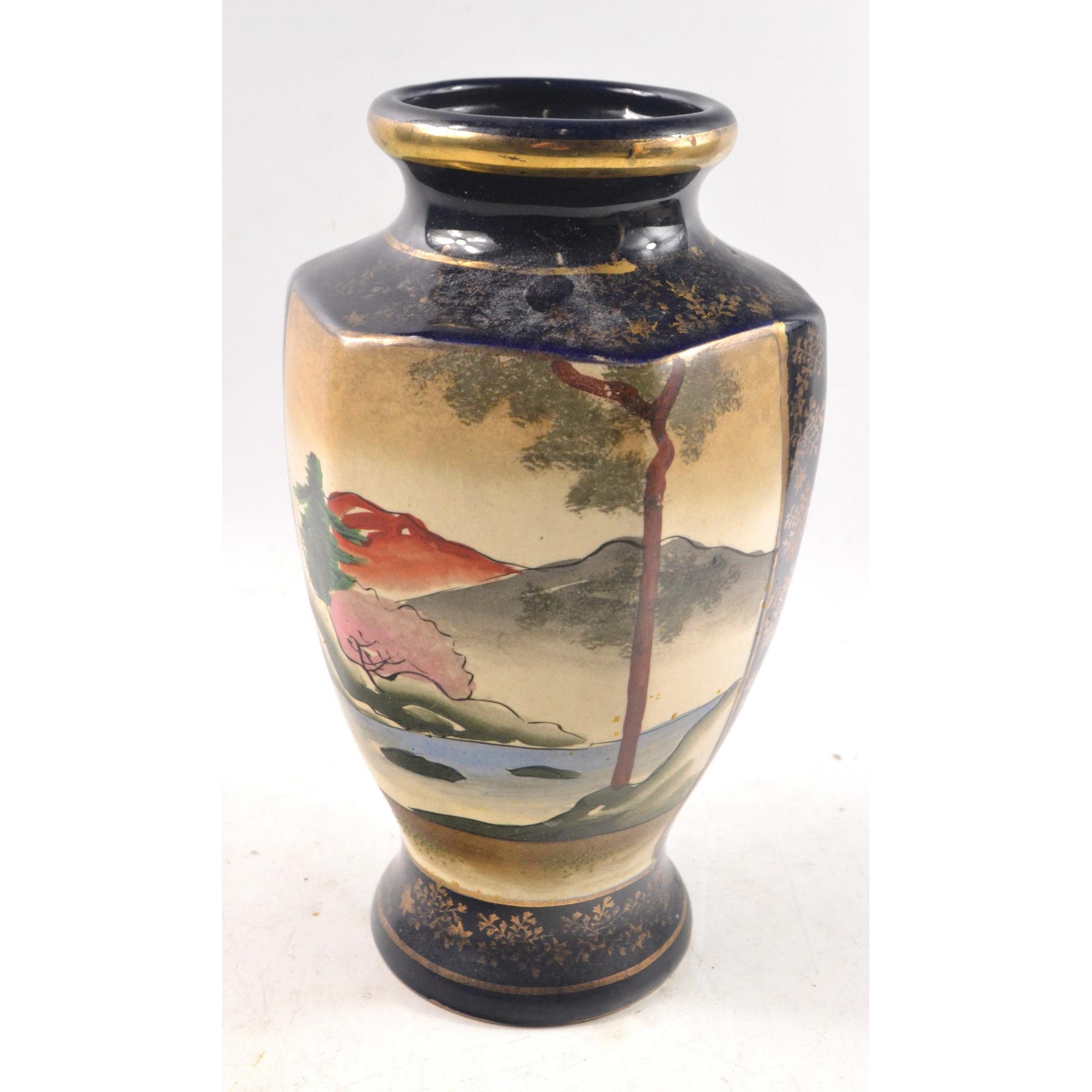 A hand painted Japanese vase c1930's with rural and mountain scenesH: 26cm approx D: 15cm approx