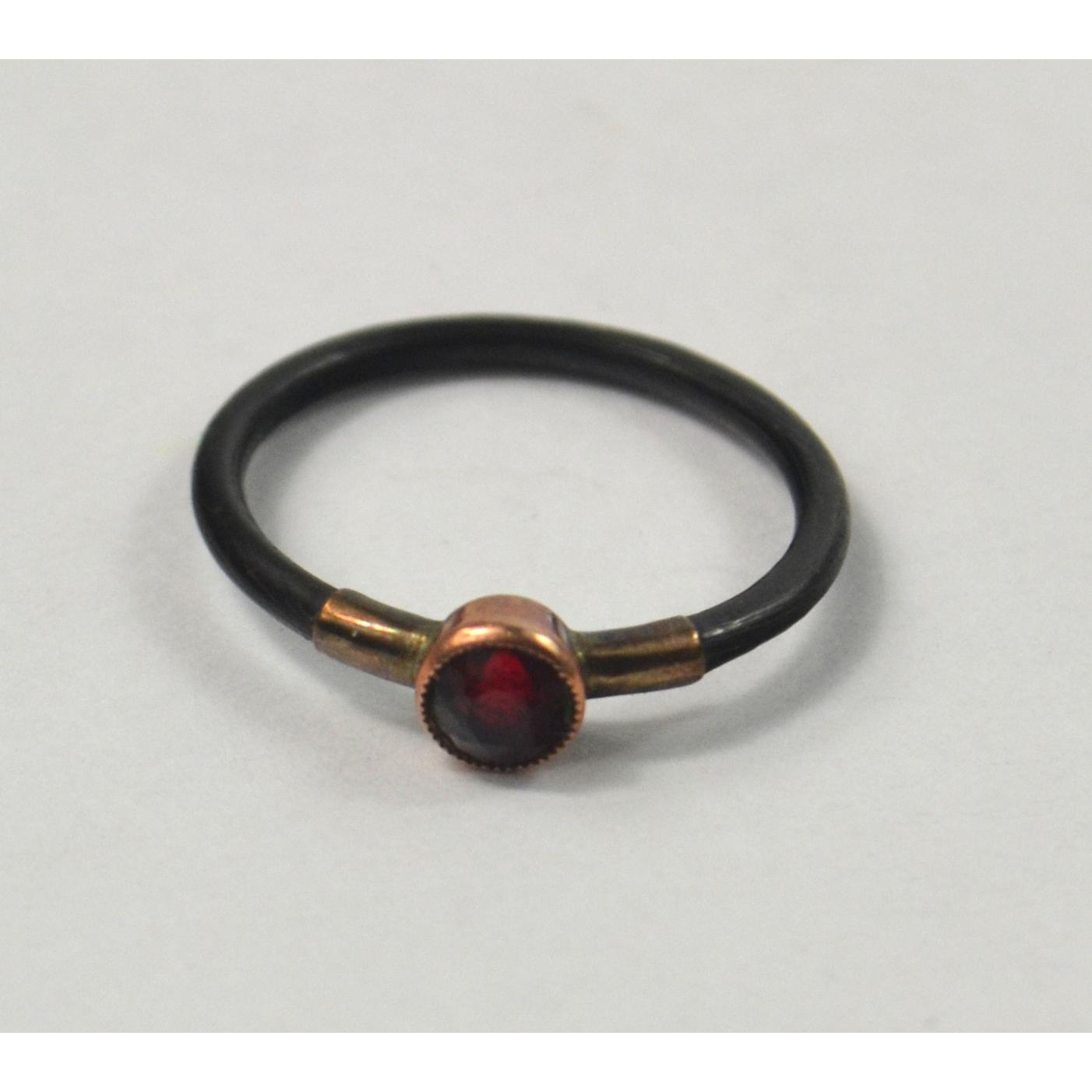 An unusual and RARE late Victorian(c1880's) reed/wood? bodied ring with a 'yellow metal 'joining band with a nice garnet insetGross weight approx 0.28g
