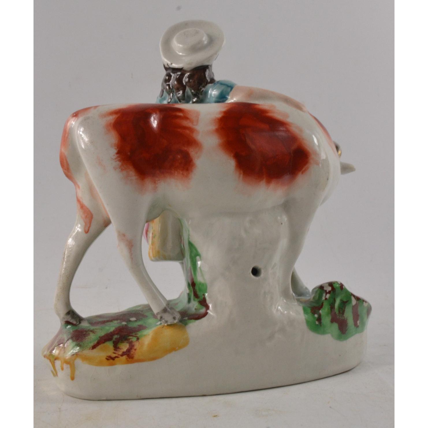 An early Victorian Flat-back style milk maid with cow hand painted and mantle ornament in good condition!L: 16cm approx H: 18cm approx