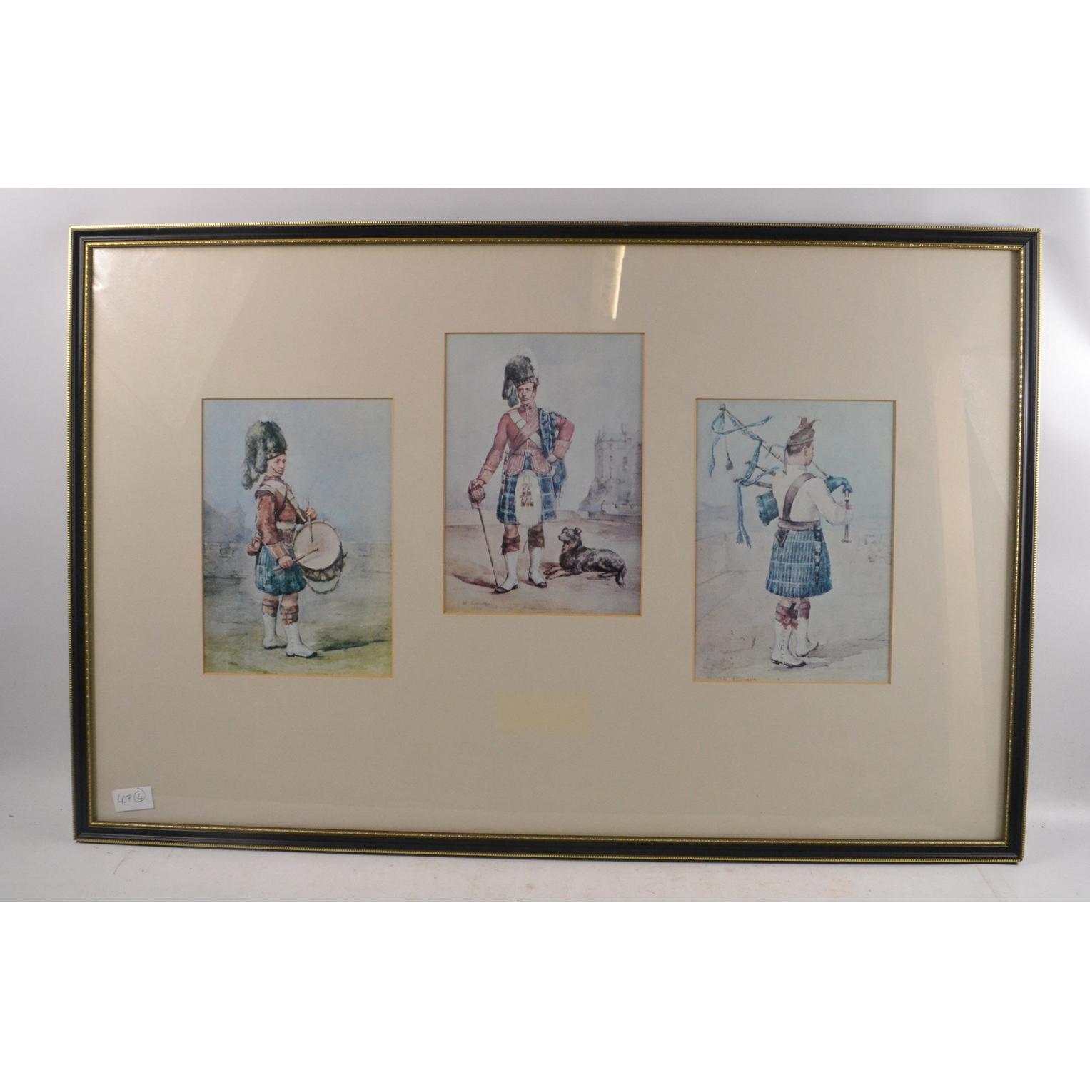 QUEENS OWN HIGHLANDERS? trio of soldier prints within a large frameL: 90cm approx H: 59cm approx