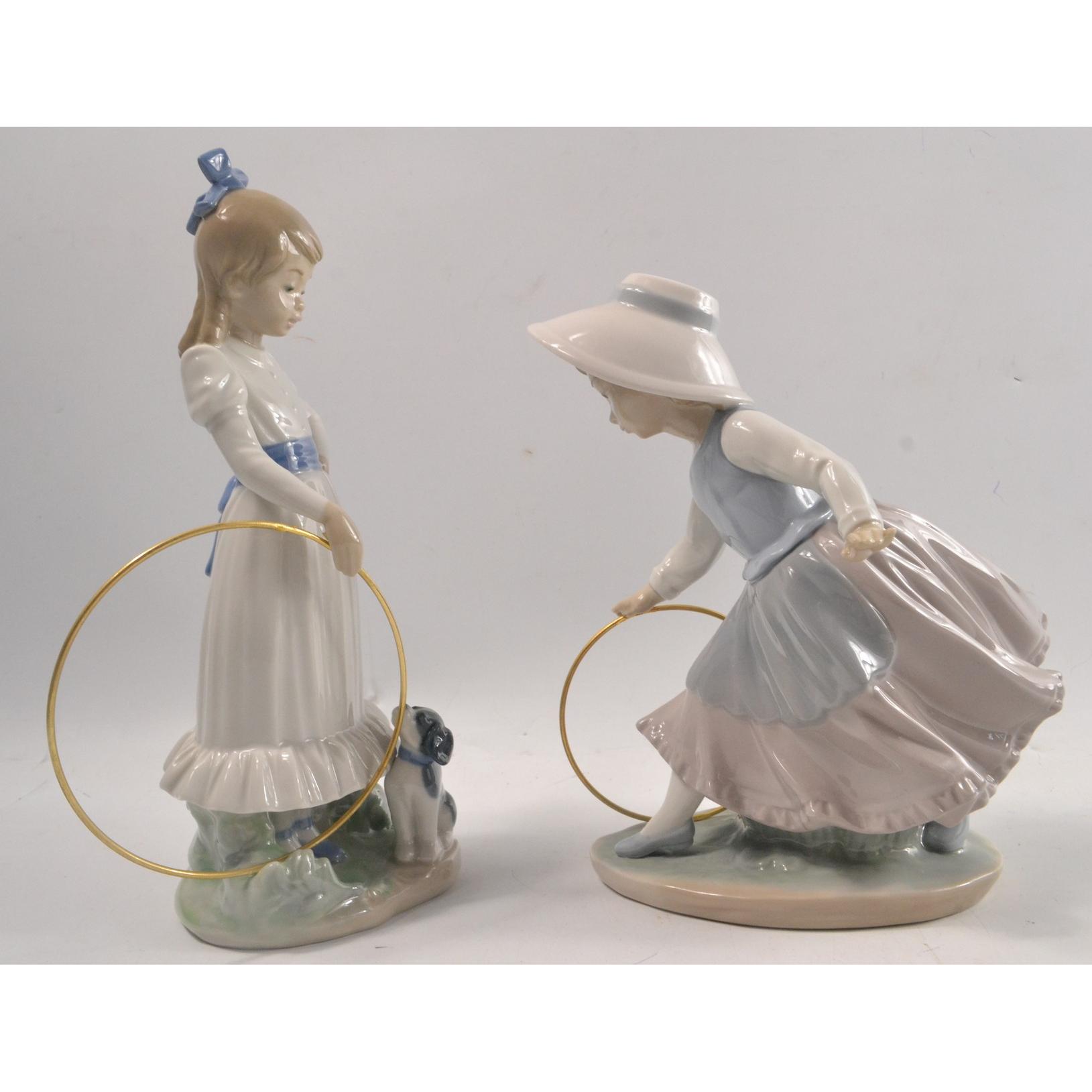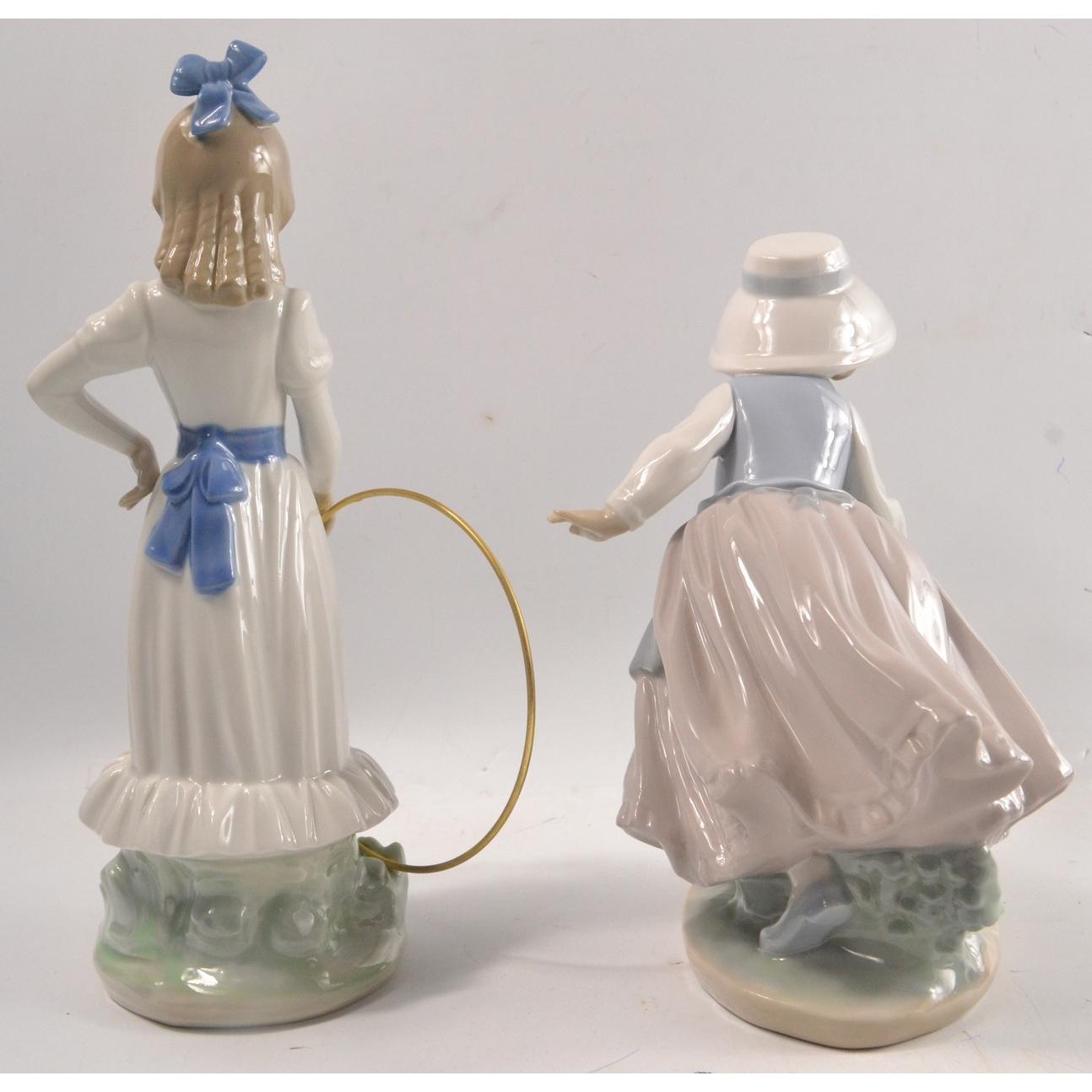 2 NAO figures to include a little girl with puppy and hoop and little girl in a bonnet with hoop