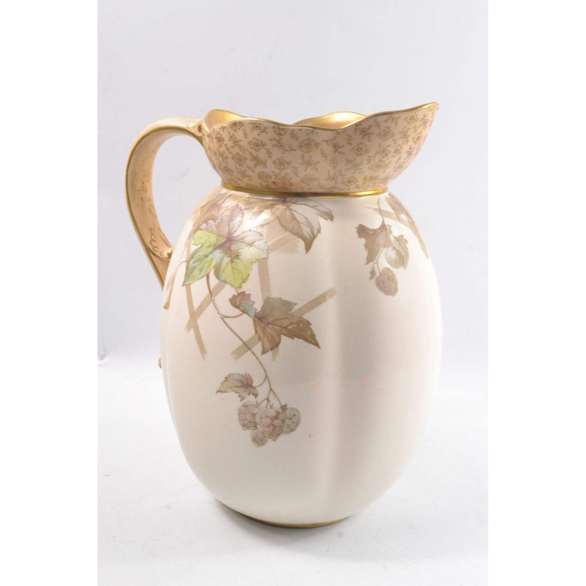 UNUSUAL! Large decorative ewar by DOULTON BURSLEM with pretty duck egg blue autumn leaf detail.H: 30cm approx
