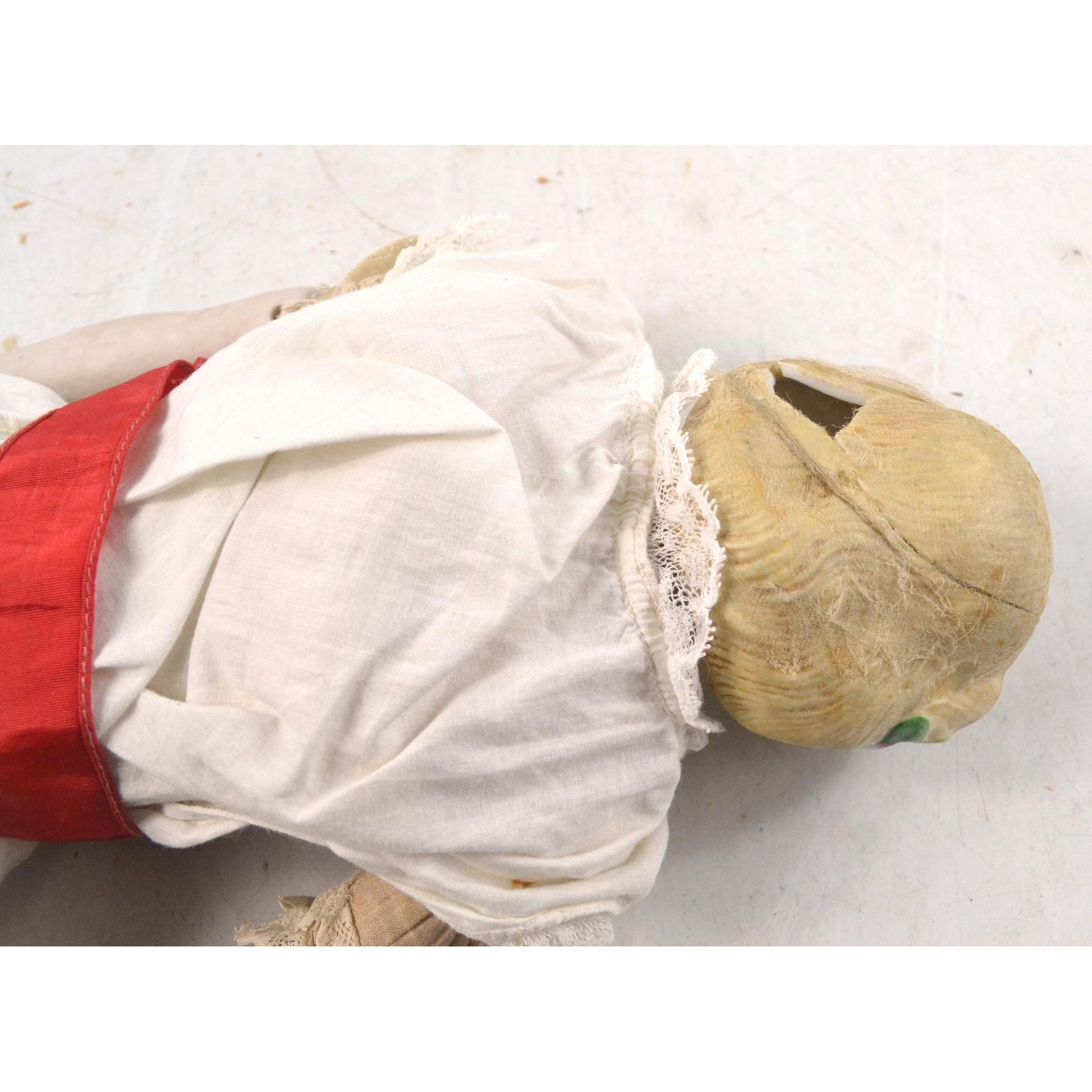 Two BISQUE style very old dolls with outfits, some damage however, and require some tlc, well played with dolls from a great London family homeApprox 2 pieces