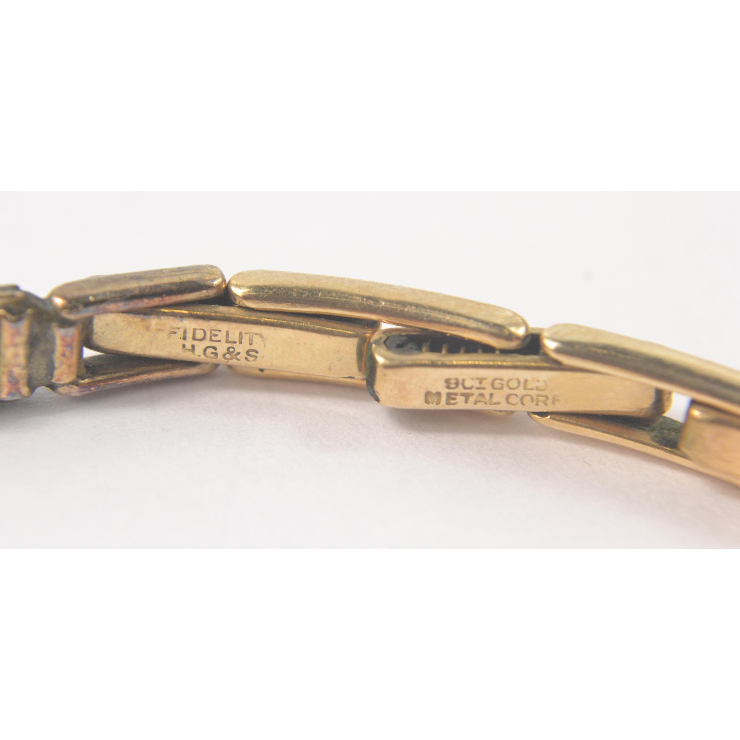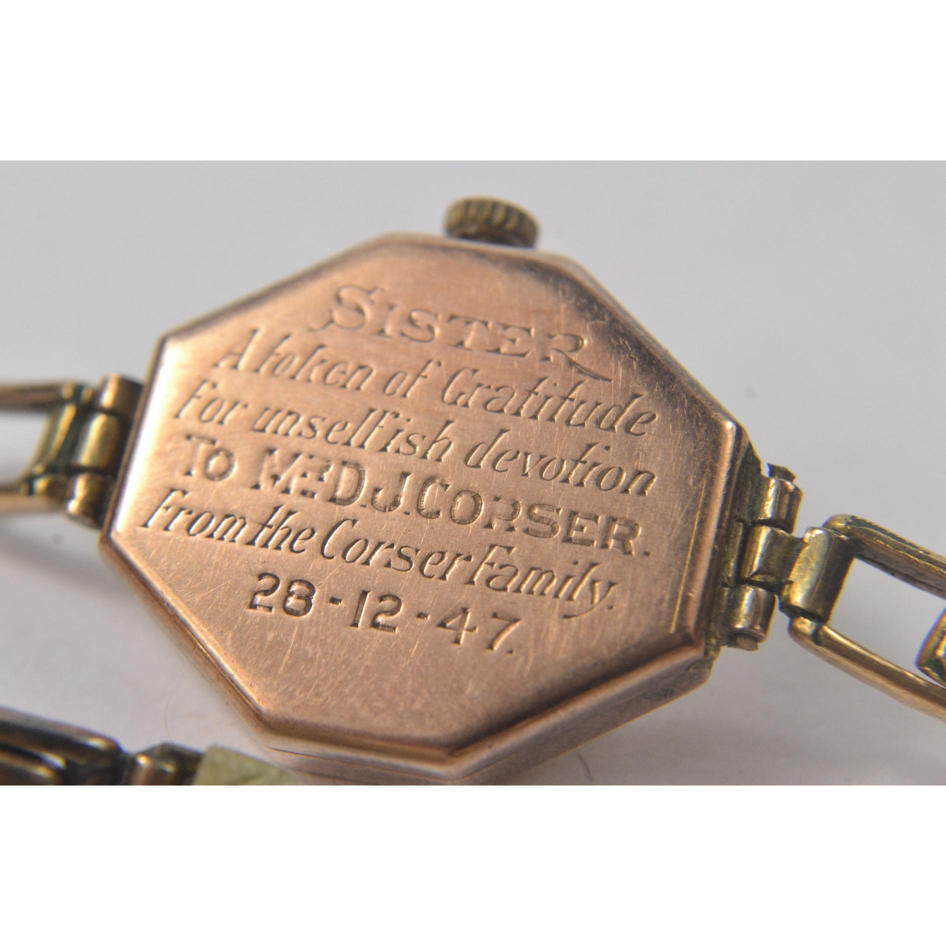 RECORD ladies wrist watch with 9ct gold case, 9ct gold filled bracelet dated to 1947 by engraving to backGross weight approx 16g