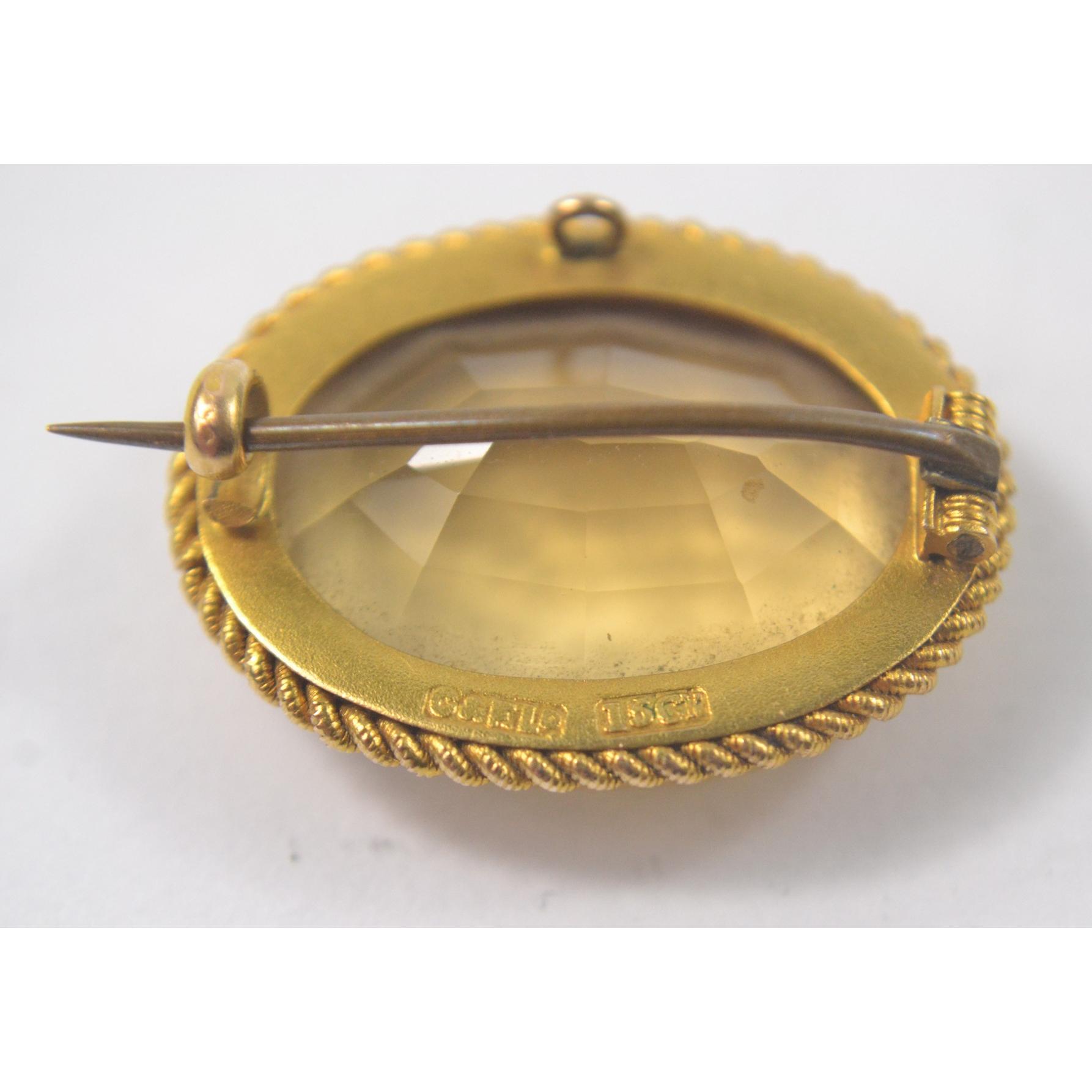 A nice wee 15ct stamped Oval Framed brooch with a large smokey quartz insetGross weight approx 6.15g