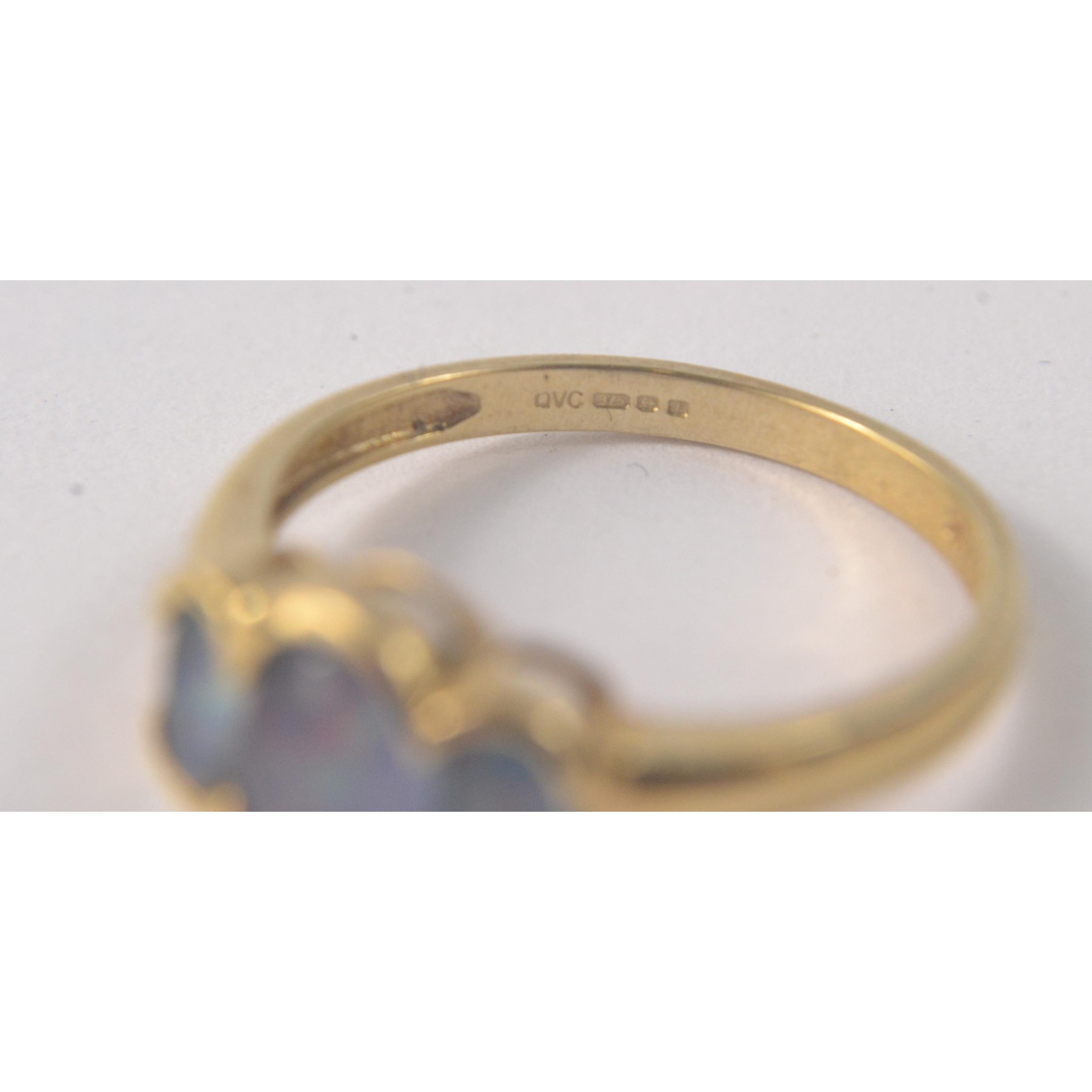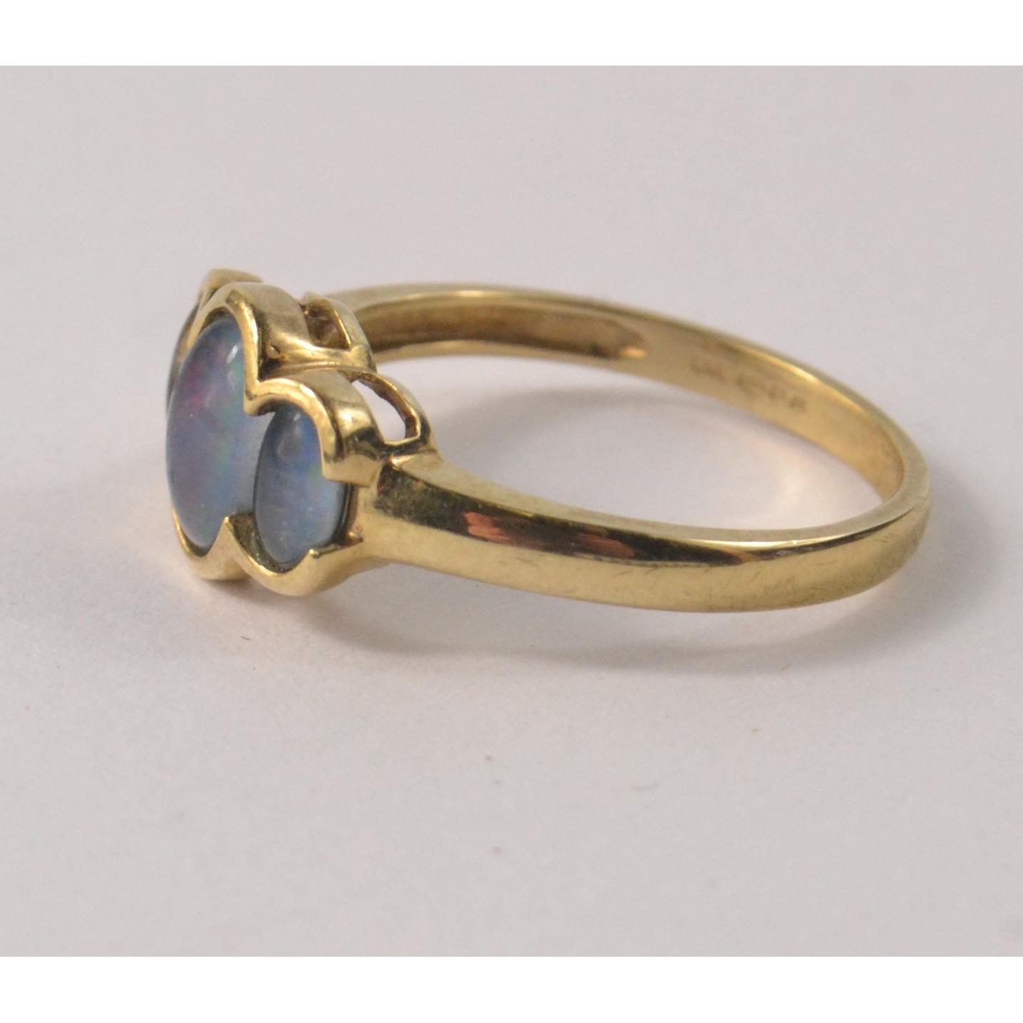 OPAL TRIPLE THREE stone ring Hallmarked Birmingham 9ct gold 2005 gross weight 1.8g [ size N ]