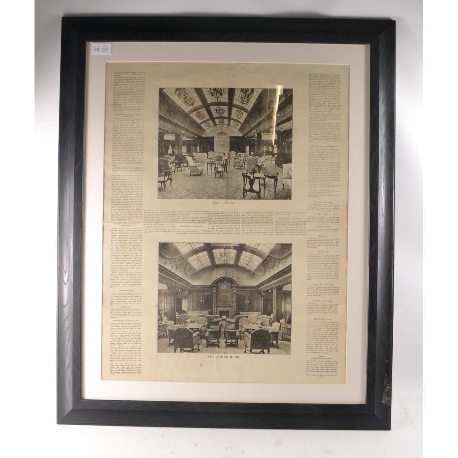 Framed Original 1907 Press Write-up and Photographs relating to the launch of RMS LUSITANIAL: 46cm approx H: 60cm approx