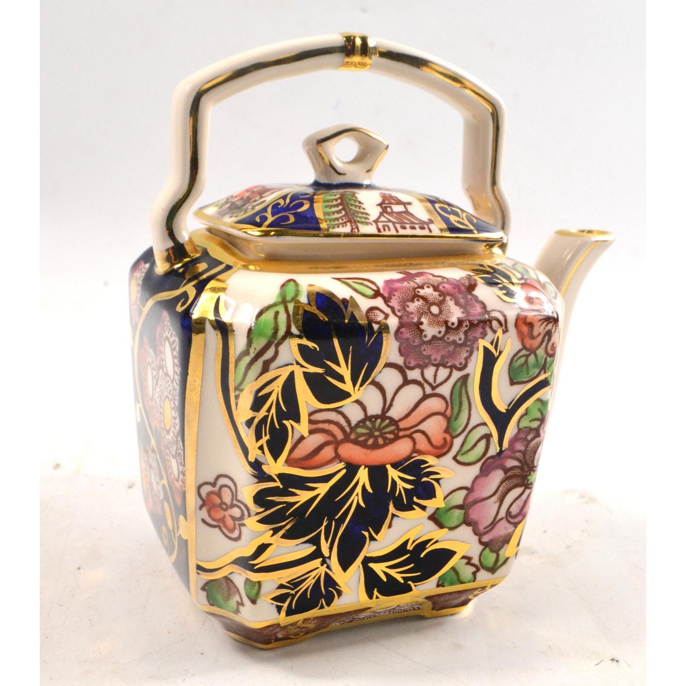 MASONS 'Penang' teapot with beautiful dark blue and gilt designL: 13cm approx H: 14cm approx
