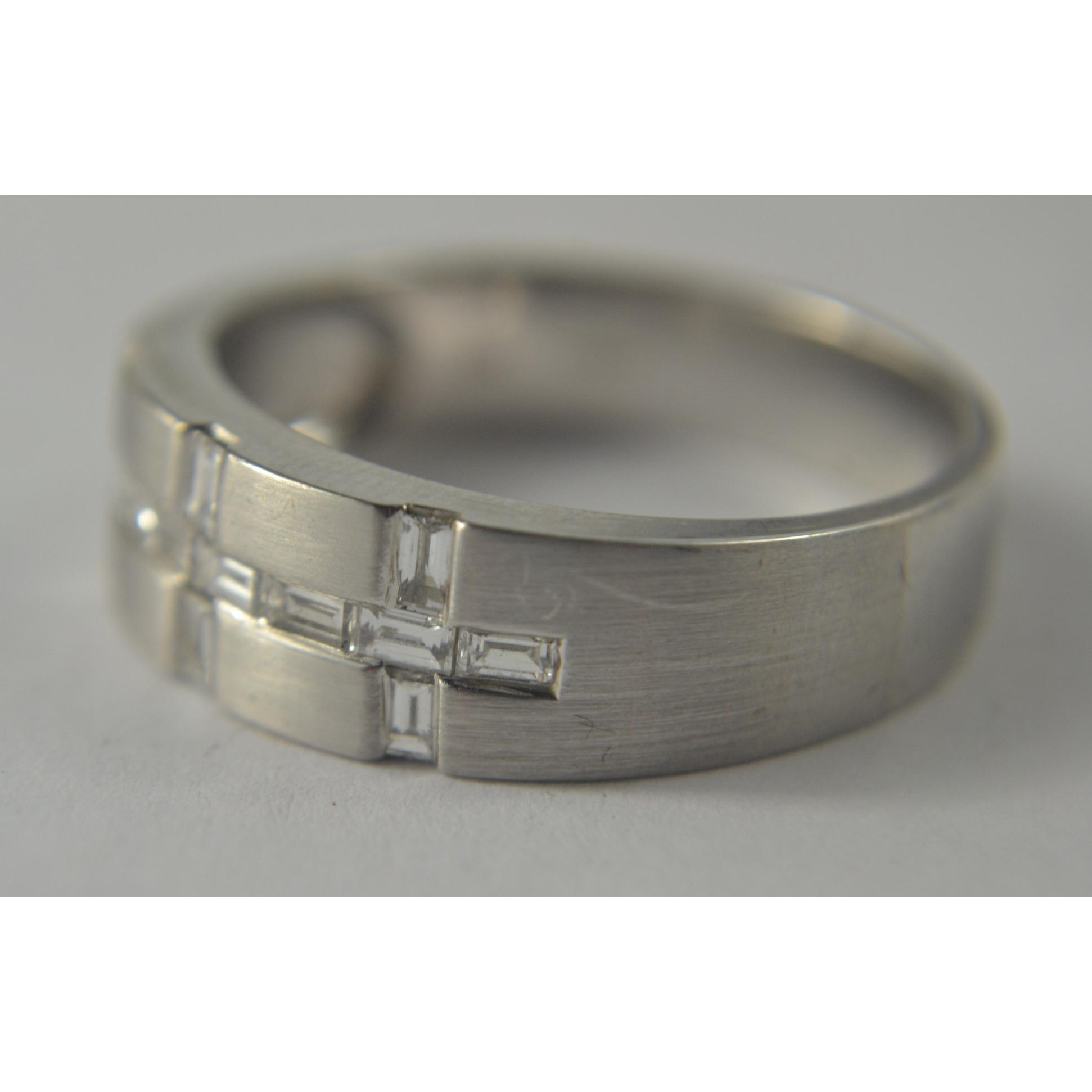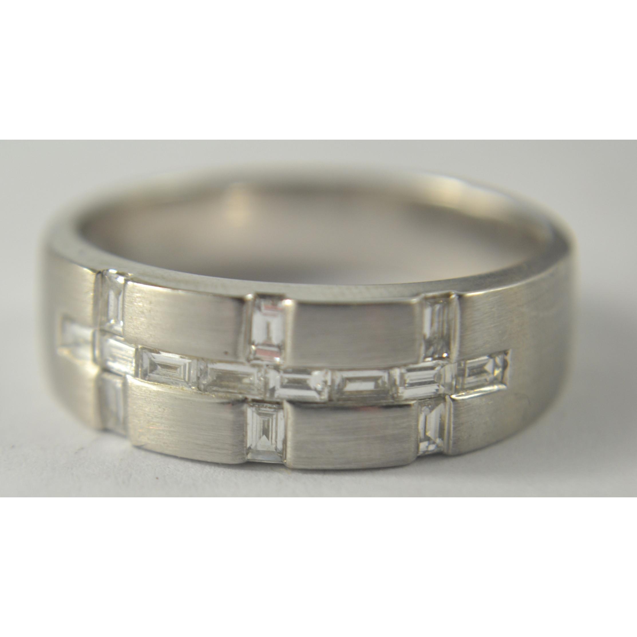 A nice quality BLING 750 stamped white gold band with a total of 0.78 carats in baguette cut diamonds, ring size W customer paid £2.4k (matching ring to previous lot)Gross weight approx 8.04g
