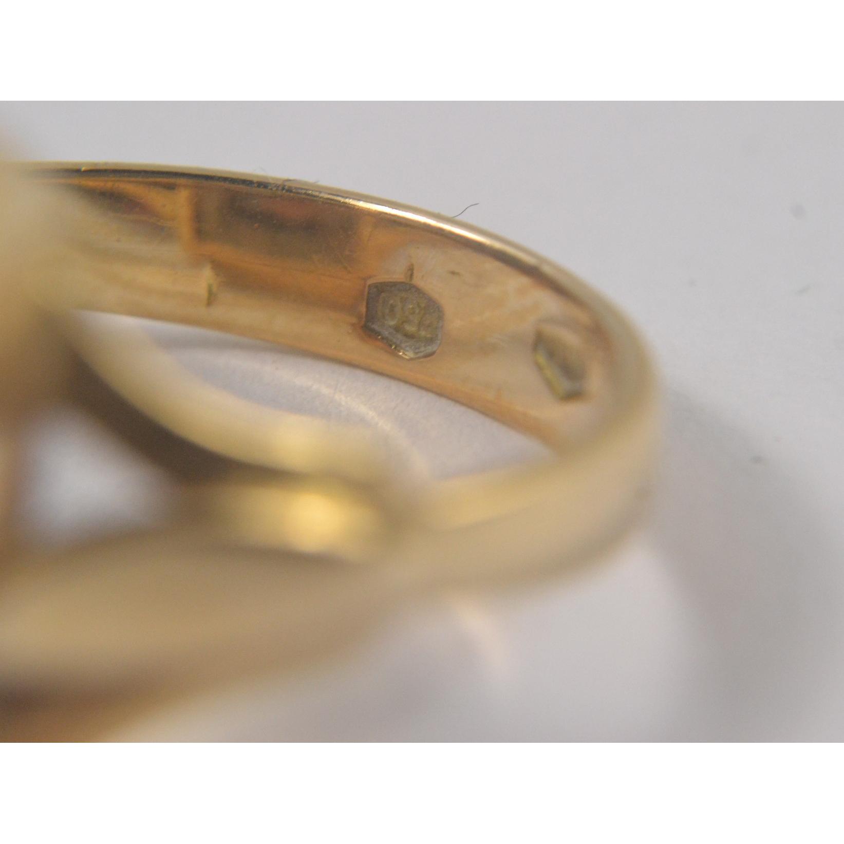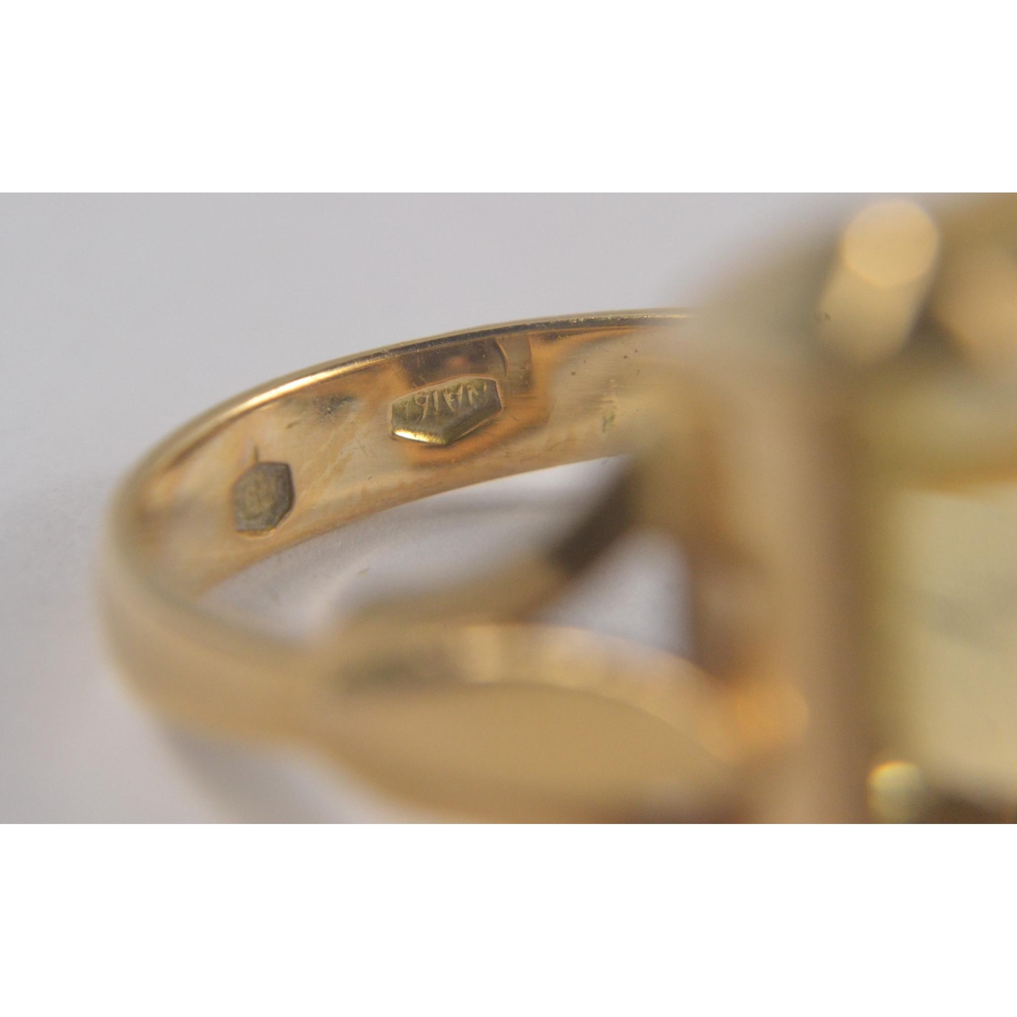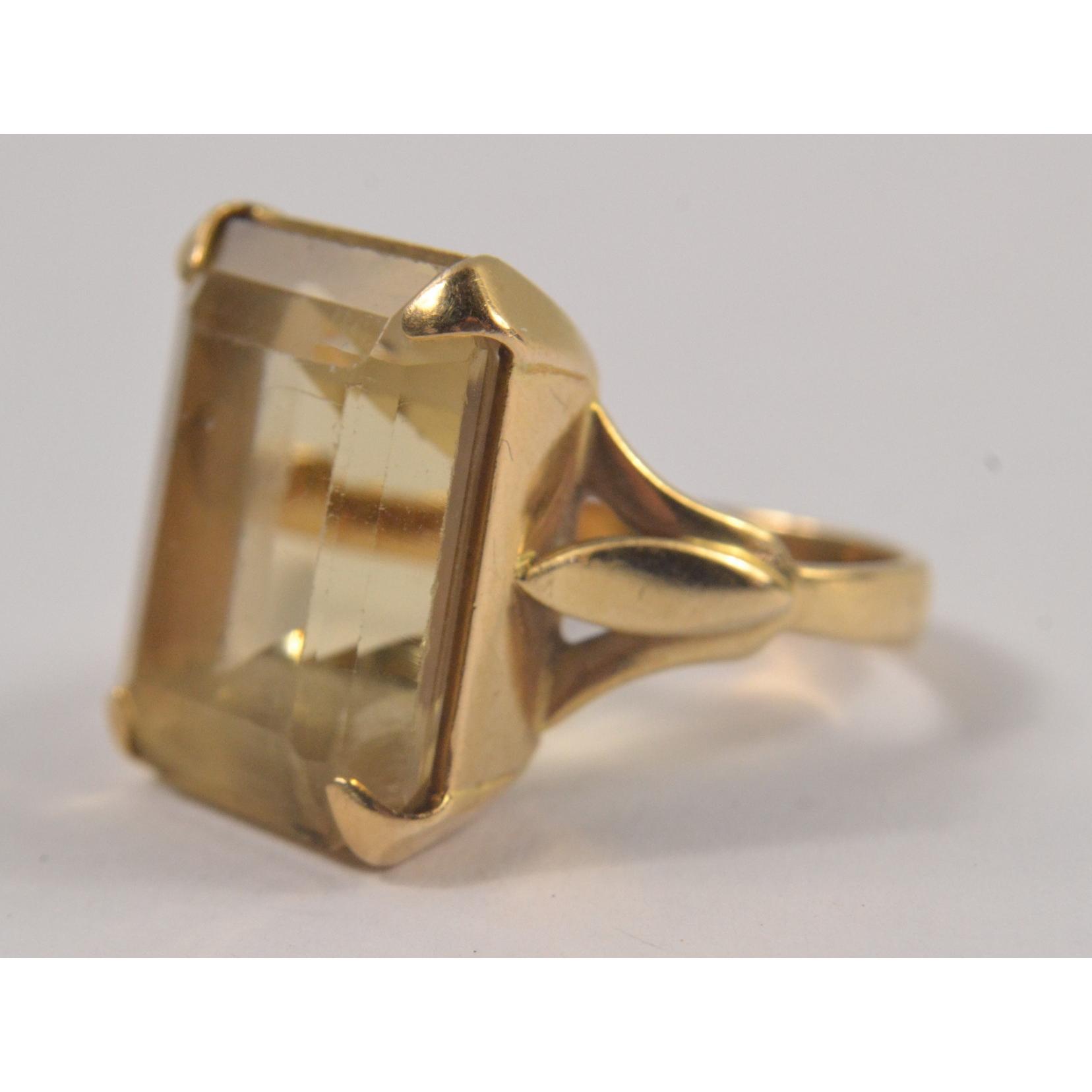 750 stamped yellow gold ring set with large Emerald cut Topaz stone [L: 20mm W: 15mm approx] [size: S]Gross weight approx 13.6g