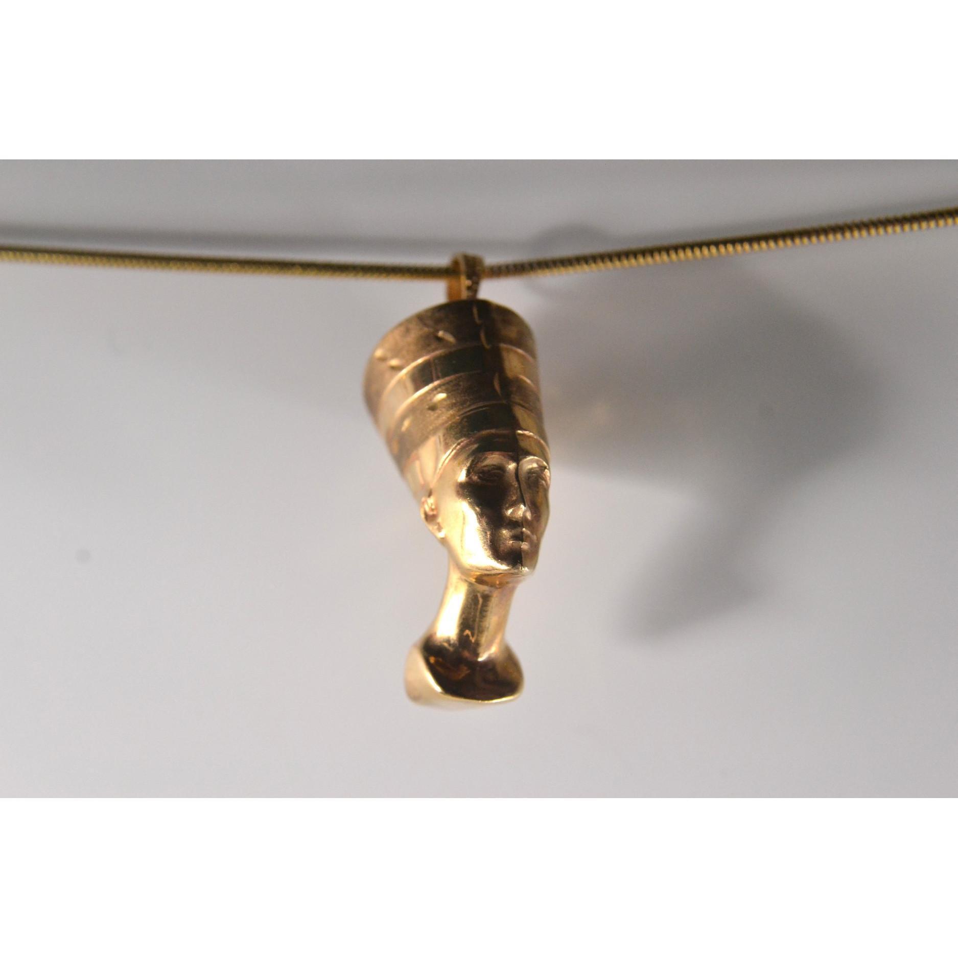 750 stamped yellow gold snake design necklace [L: 72cm approx] and a yellow metal pharoh head pendant (tested as 10ct)Gross weight approx 19.5g