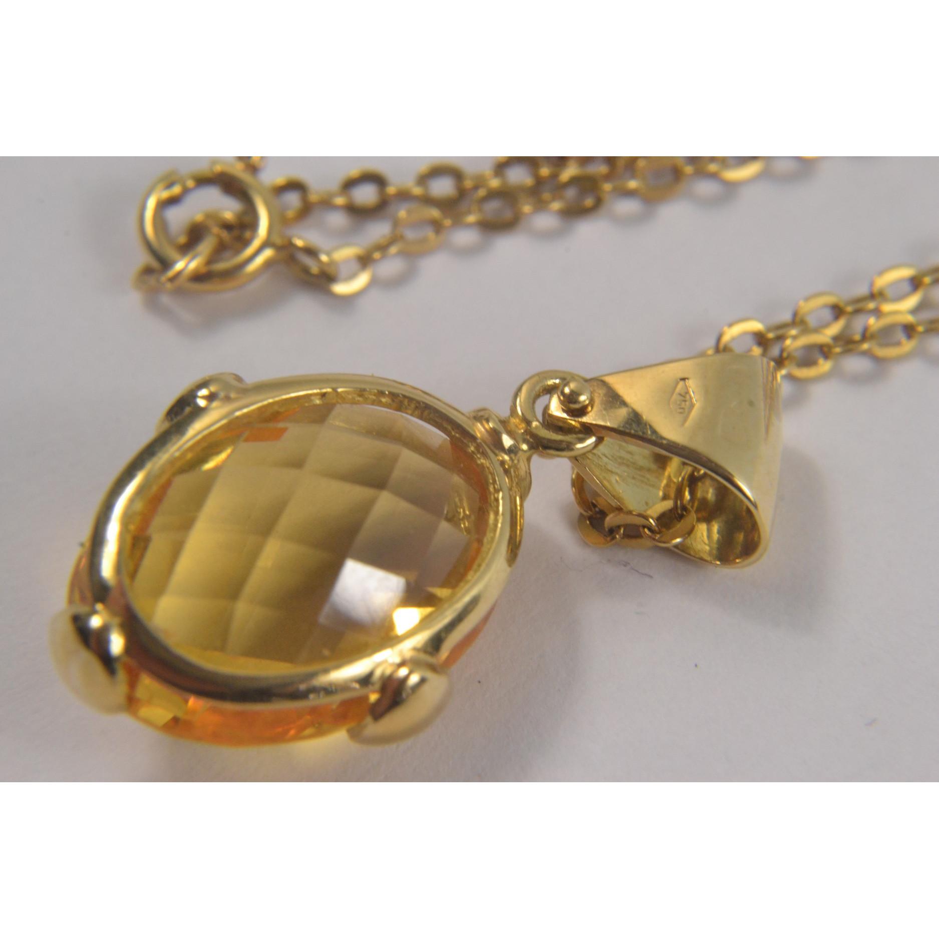 750 stamped yellow gold cable style necklace [L: 74cm approx] with 750 stamped pendant set with large rounded faceted citrine [L: 18mm W: 13mm approx]Gross weight approx Chain: 6.3g Pendant: 5g