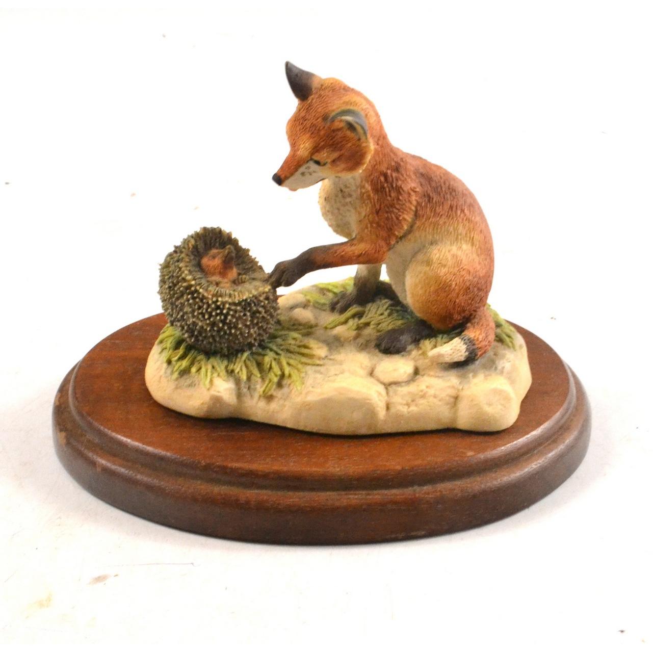 BORDER FINE ARTS fox cub and hedgehog model No FE1 on a plynthL: 10cm approx H: 8cm approx