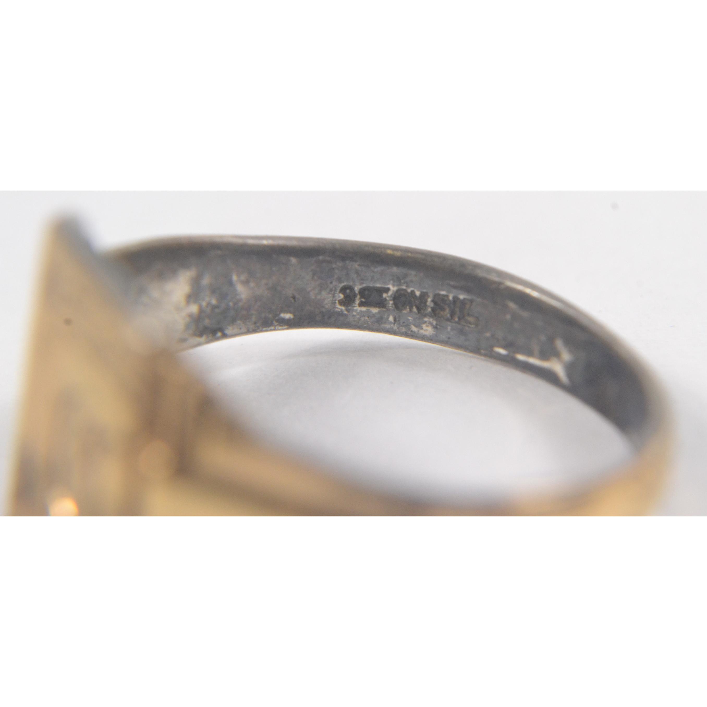 Gents square faced signet 9ct gold lined with silver ring engraved with intials D.S [size R]Gross weight approx 3.1g