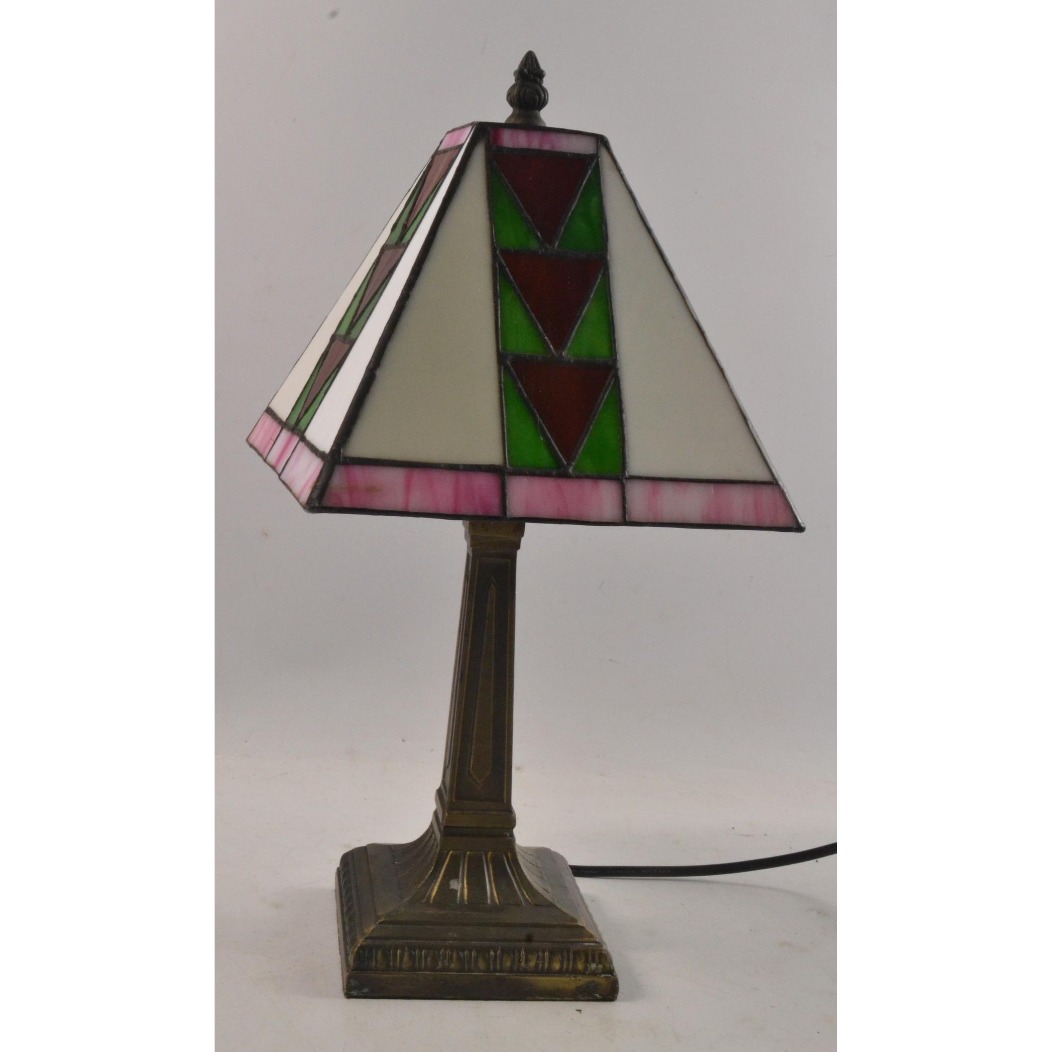 UNUSUAL TIFFANY inspired table lamp in a green white pink and red design 40cm height