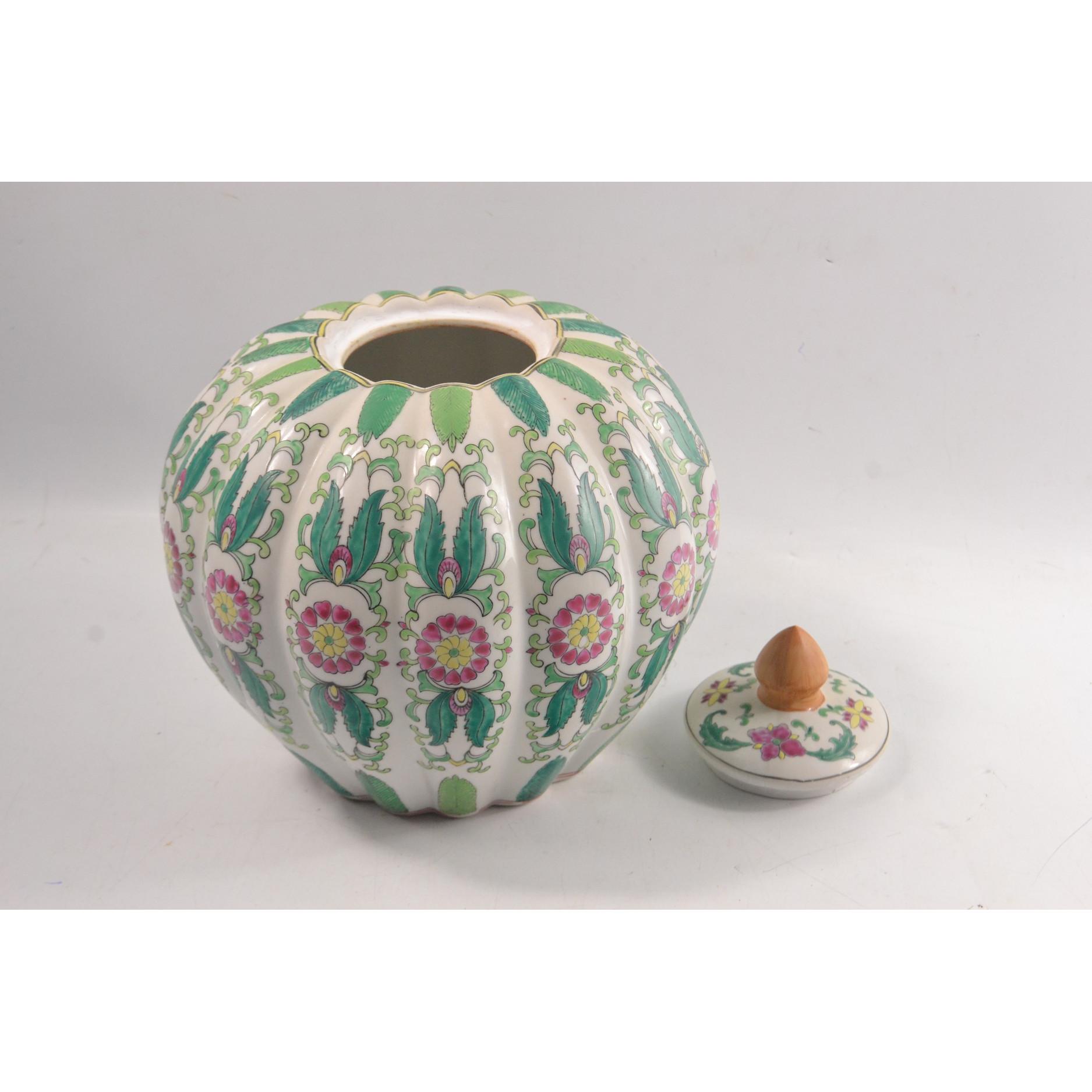 Large CHINESE Famille Rose pumpkin style lidded vase