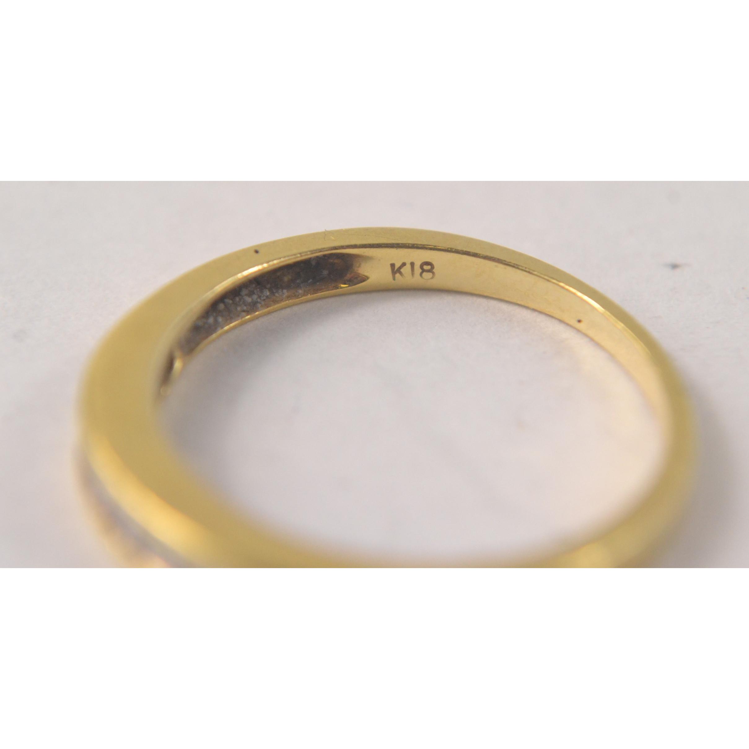 18k stamped yellow gold ring size O, with small diamonds inset(tested)Gross weight approx 2.8g