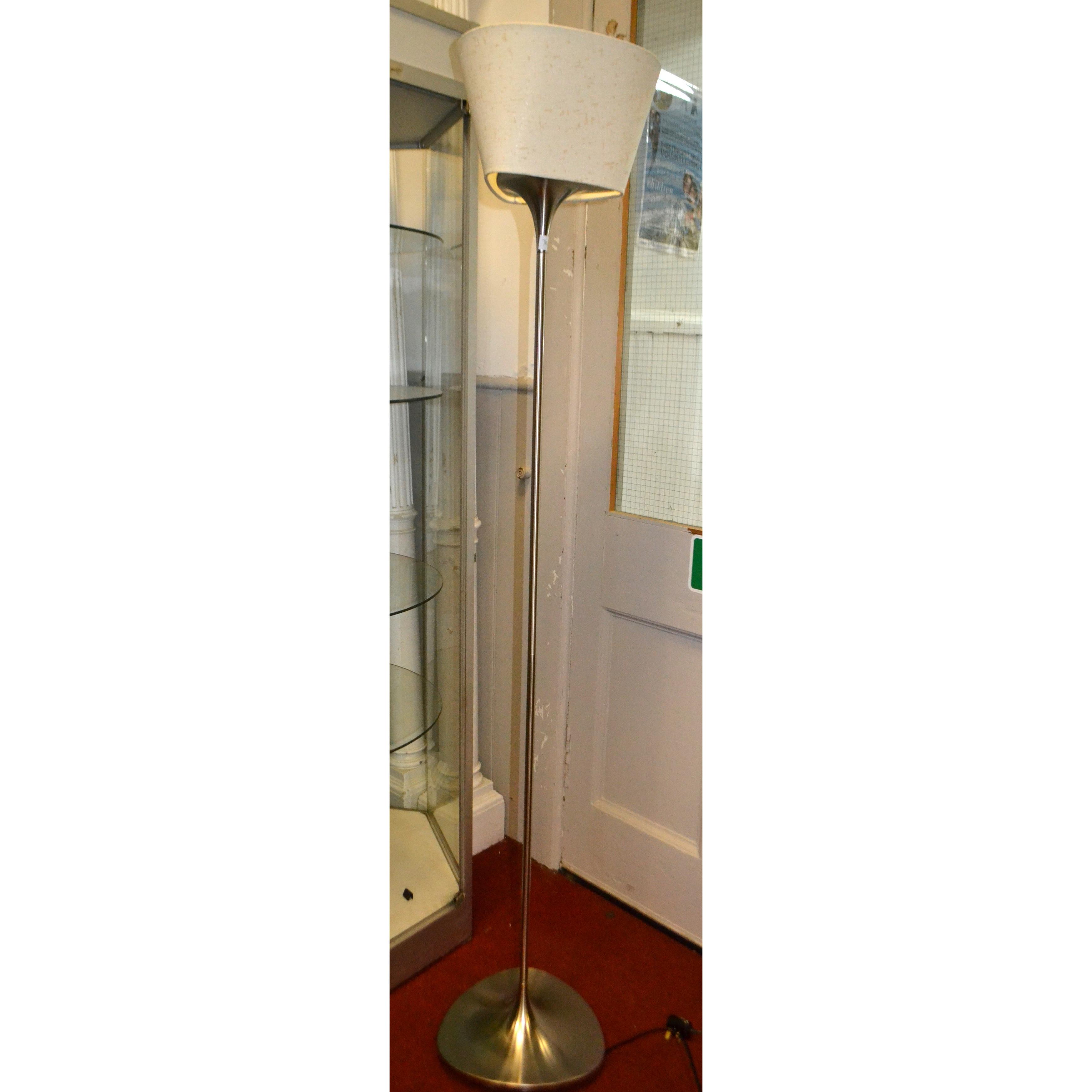 Good quality! Floor uplighter light on brushed stainless steel stand H: 5.75ft approx