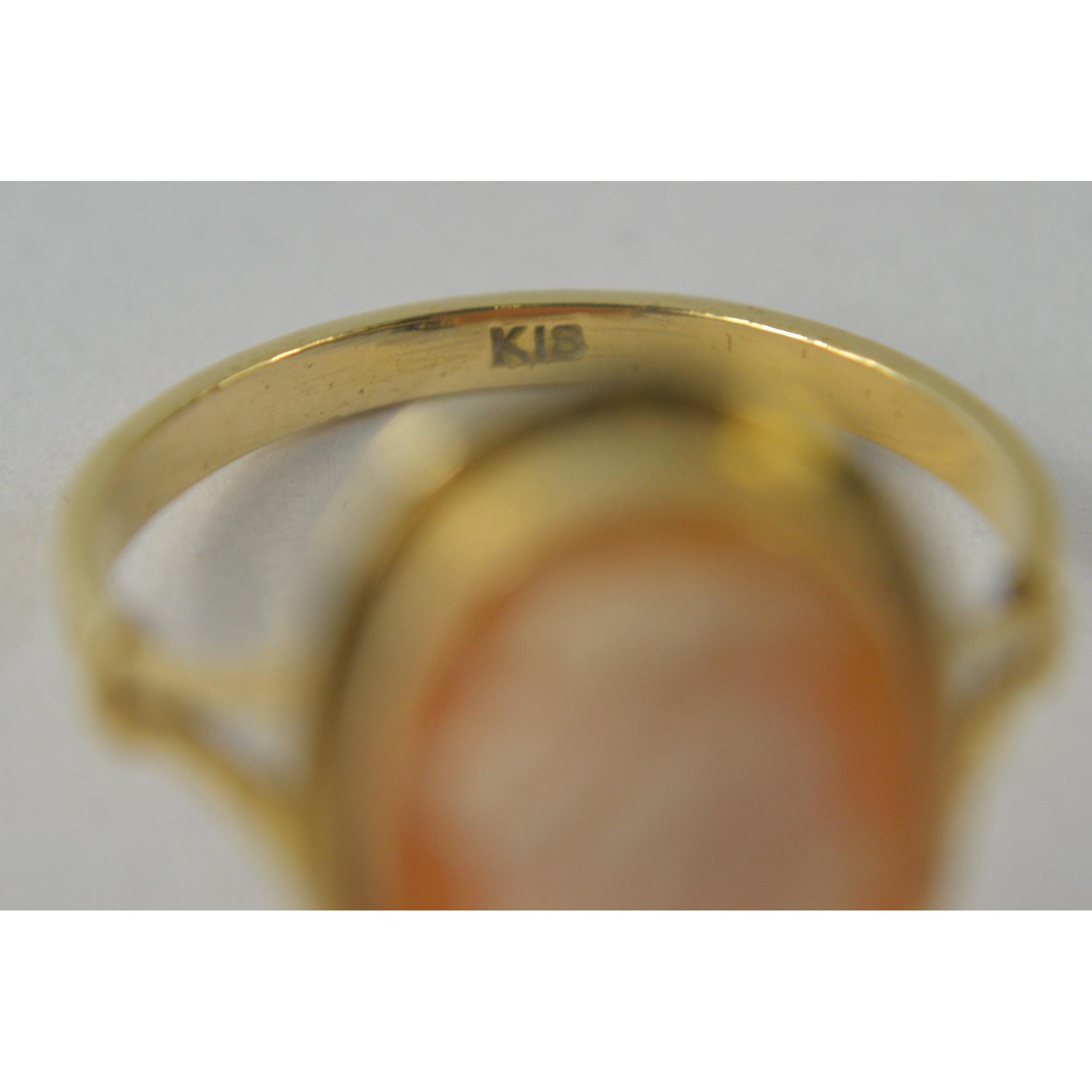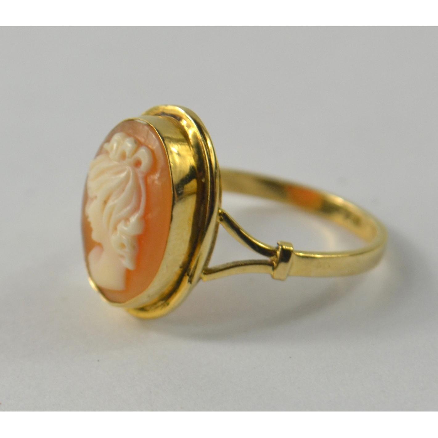 Yellow gold 18k marked oval cameo ring [size P]