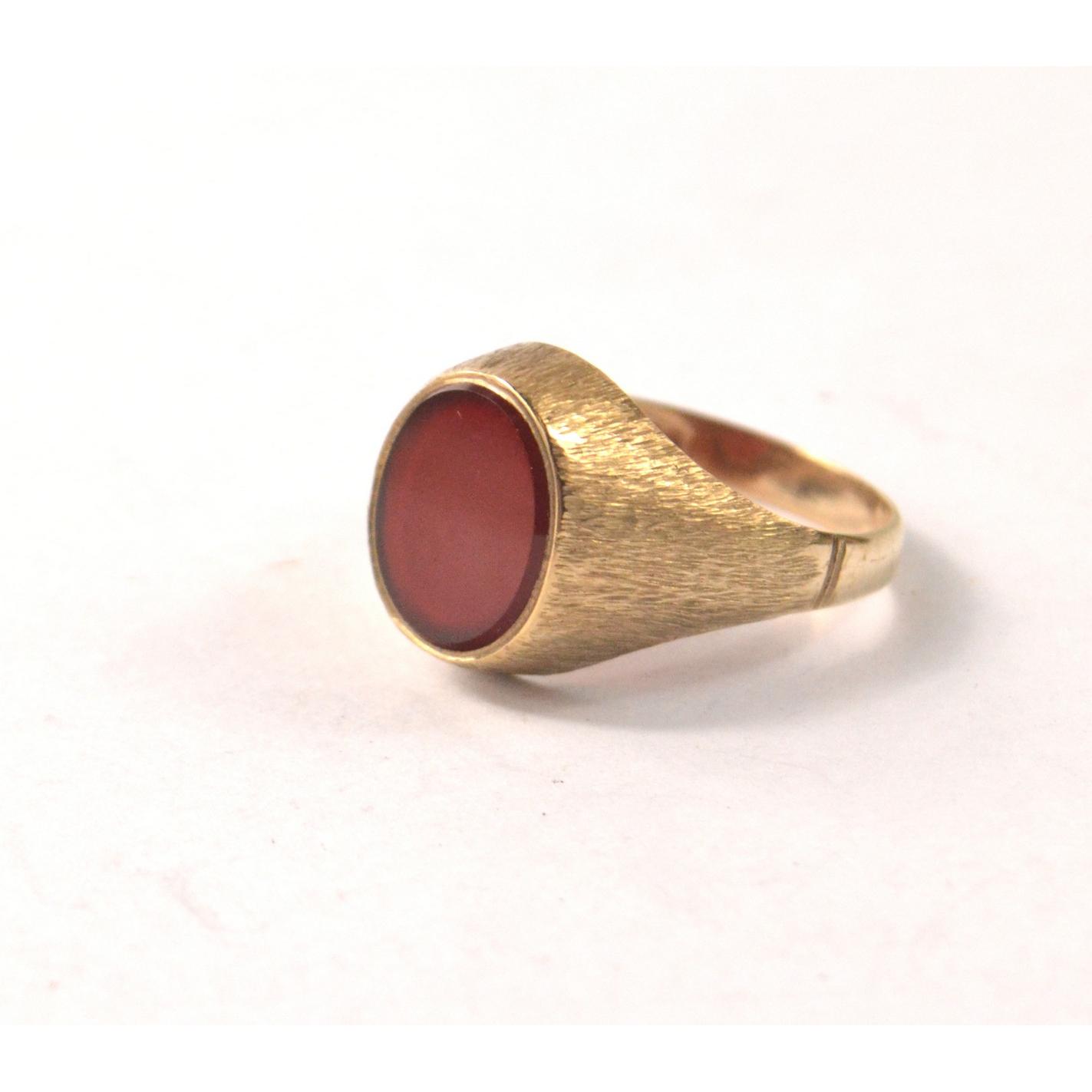 Agate set 375 hallmarked yellow gold ring, with bark design in settingand shoulders [ size T ]Gross weight approx 4.7 grm ]