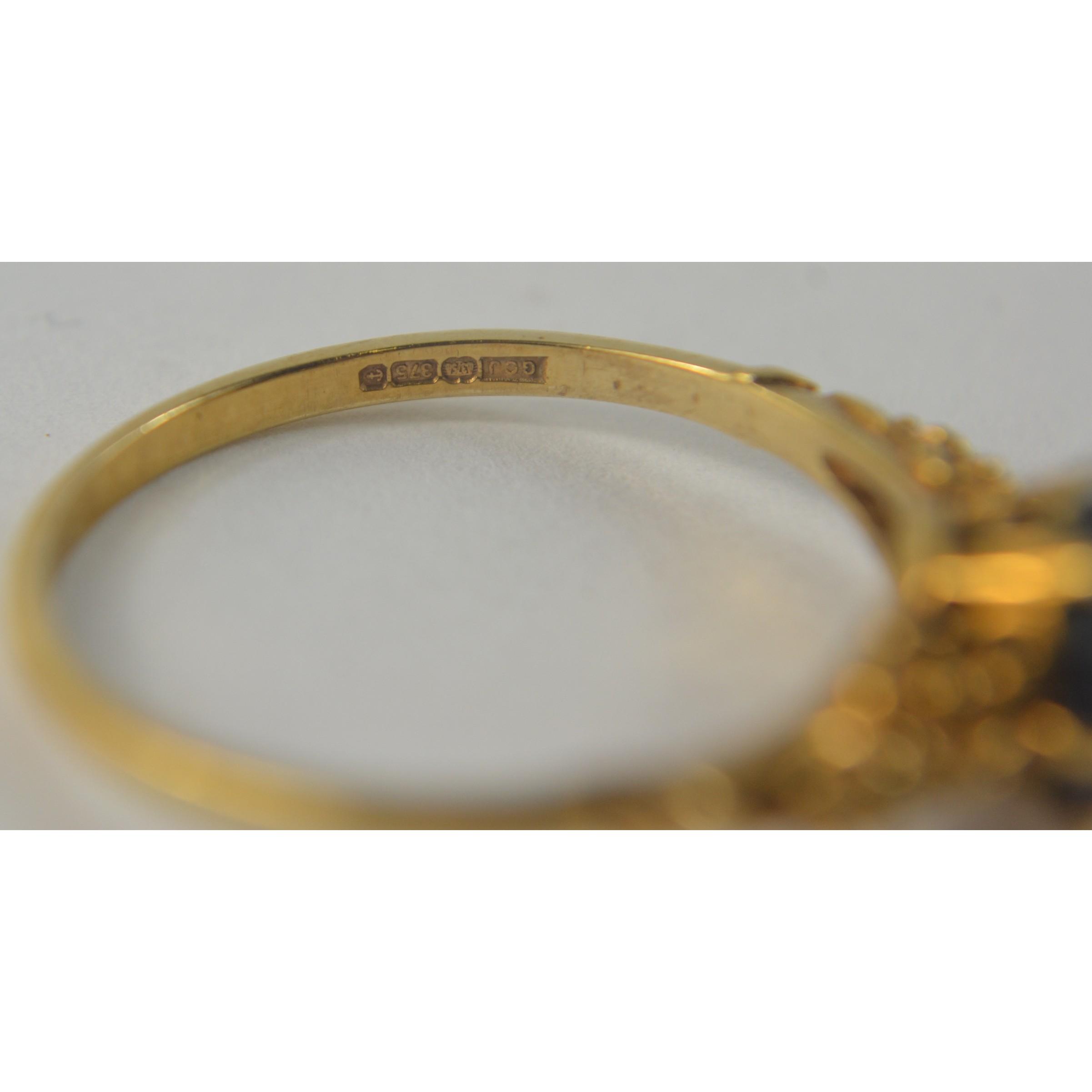 VINTAGE Circular Blue stone set in 375 hallmarked yellow gold, [ size R/S ]Gross weight approx 2.10 grm