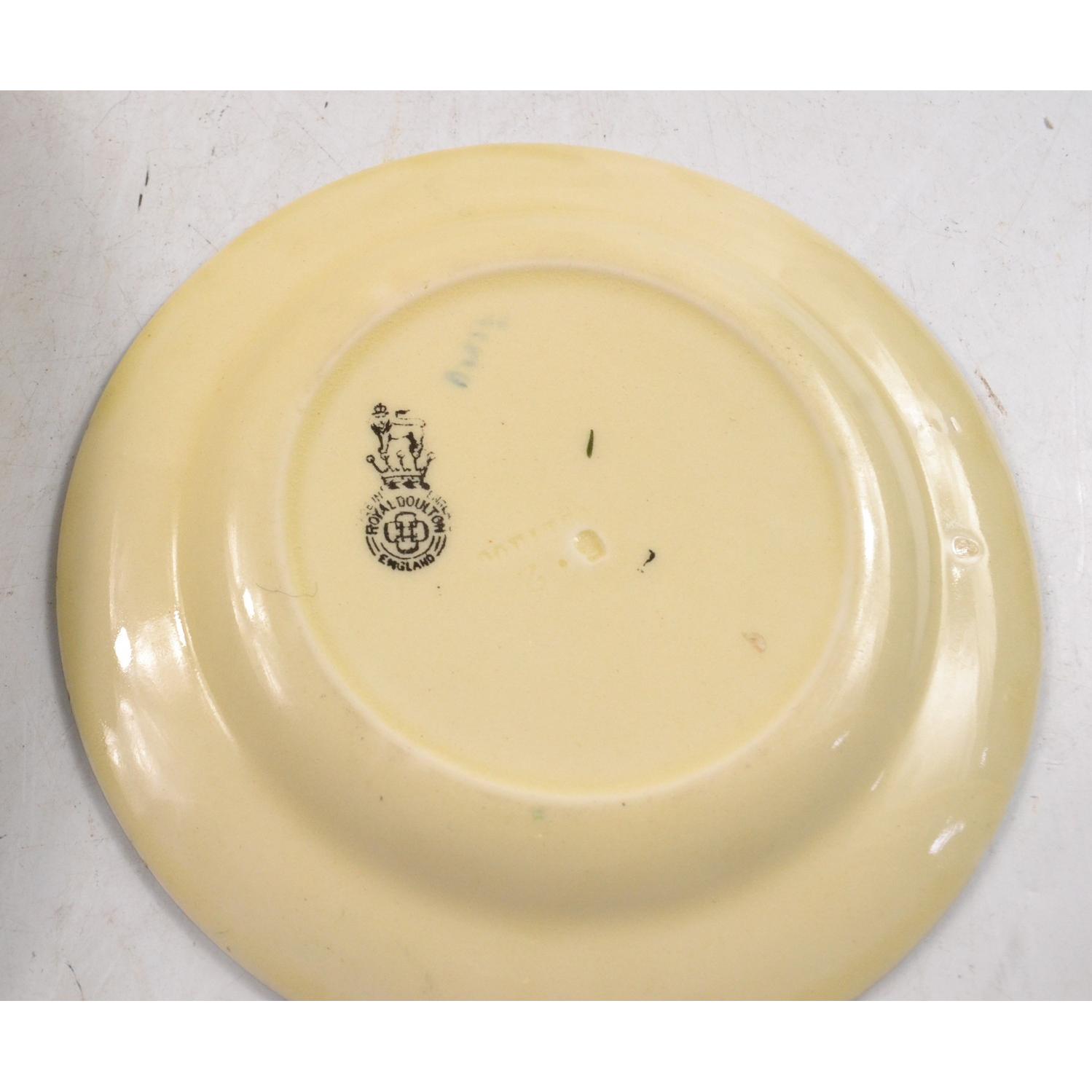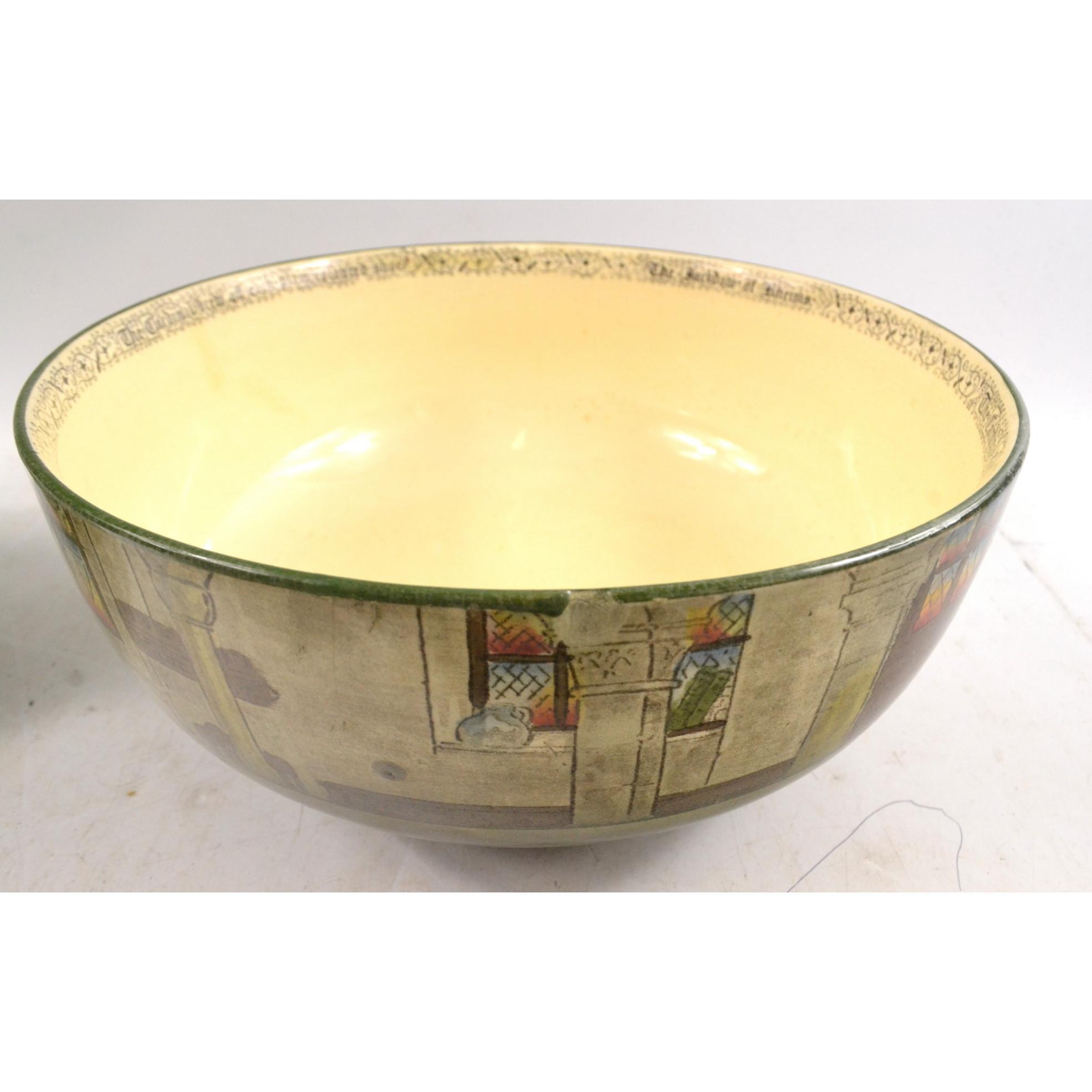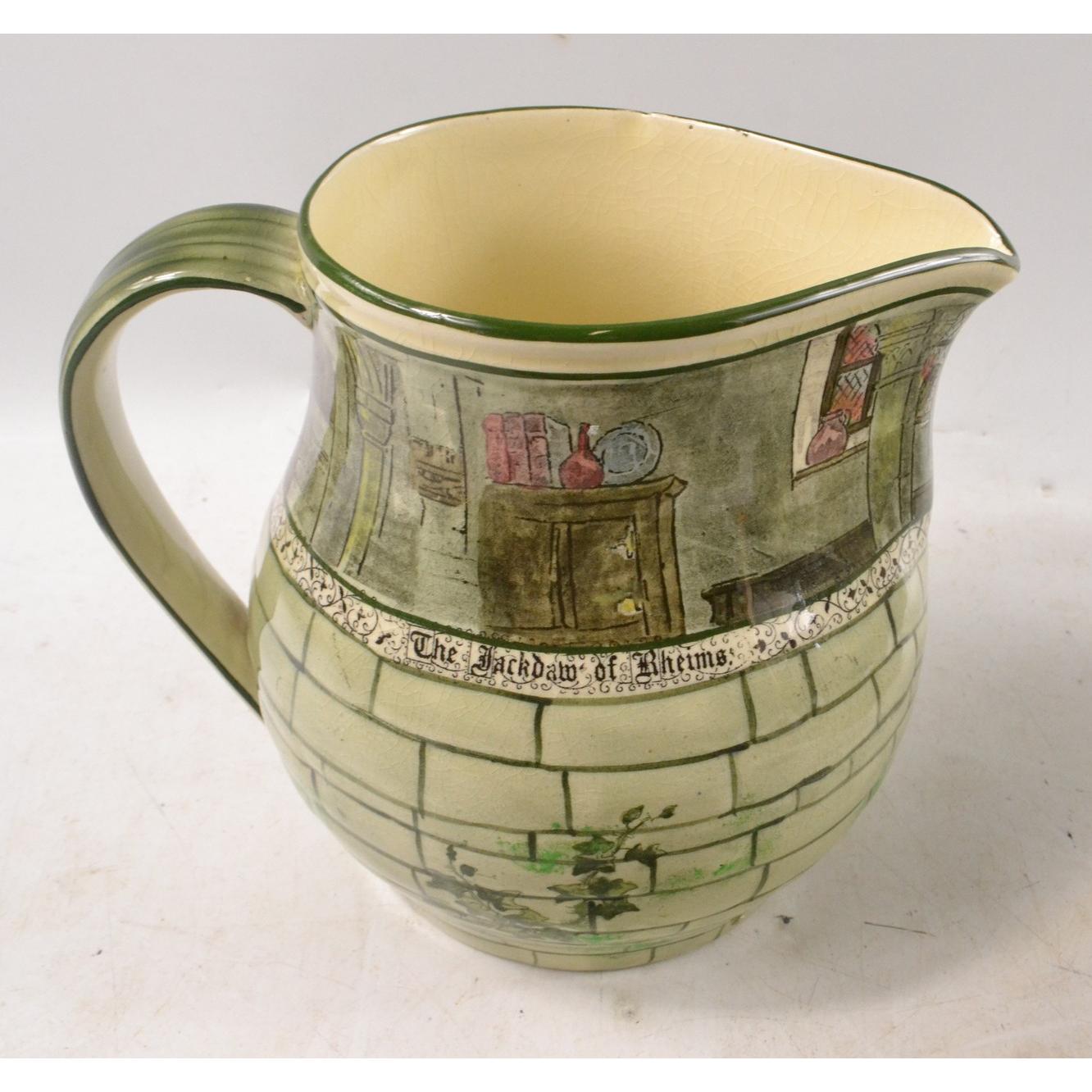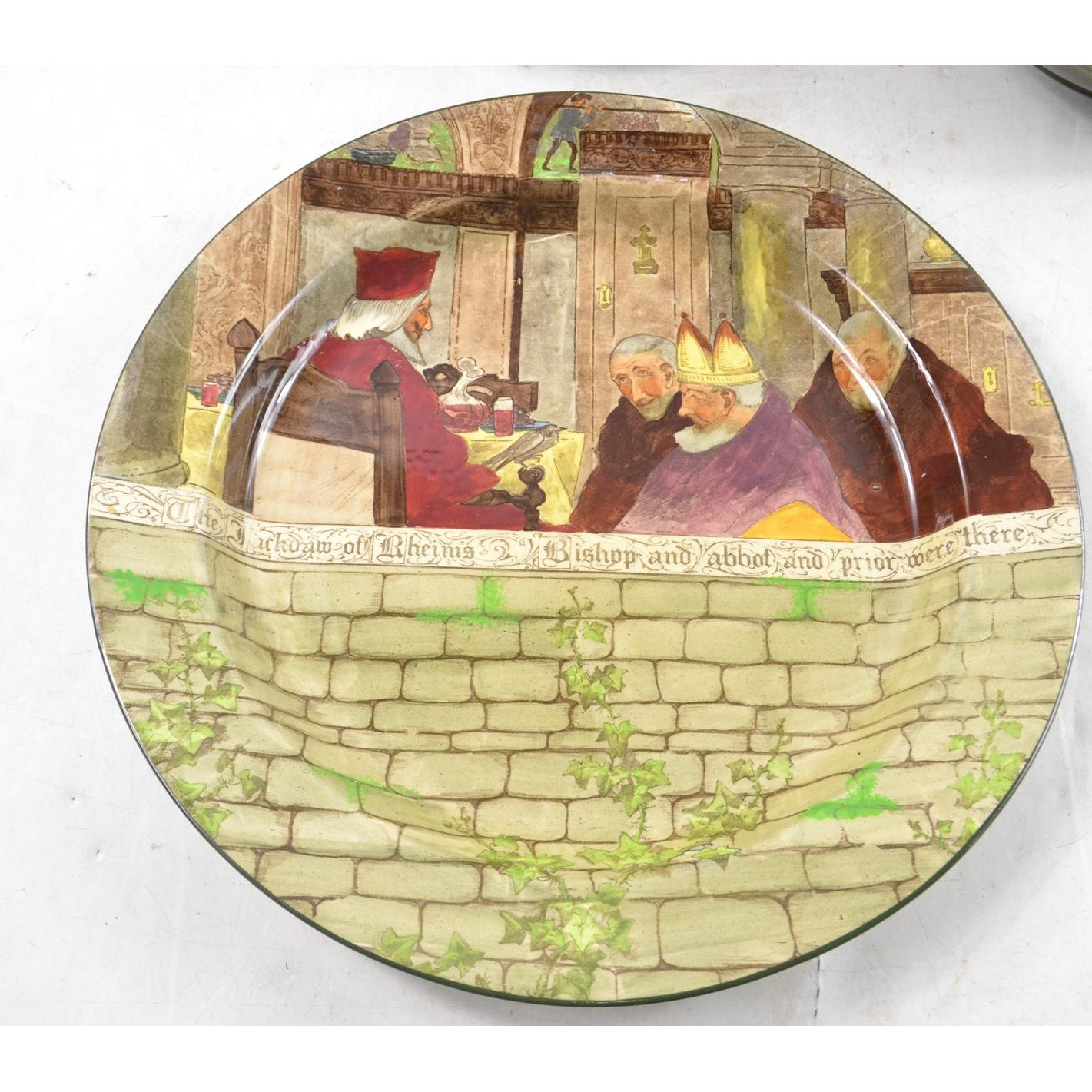 Vintage ROYAL DOULTON Monk Character wash set to include a large bowl diameter 23cm, also to include a soap dish 14cm diameter, also a large serving plate 32cm diameter, and large handled jug to complete the set 17cm Height, small aged chip on the outside of the rim of the bowl(thumb nail size)