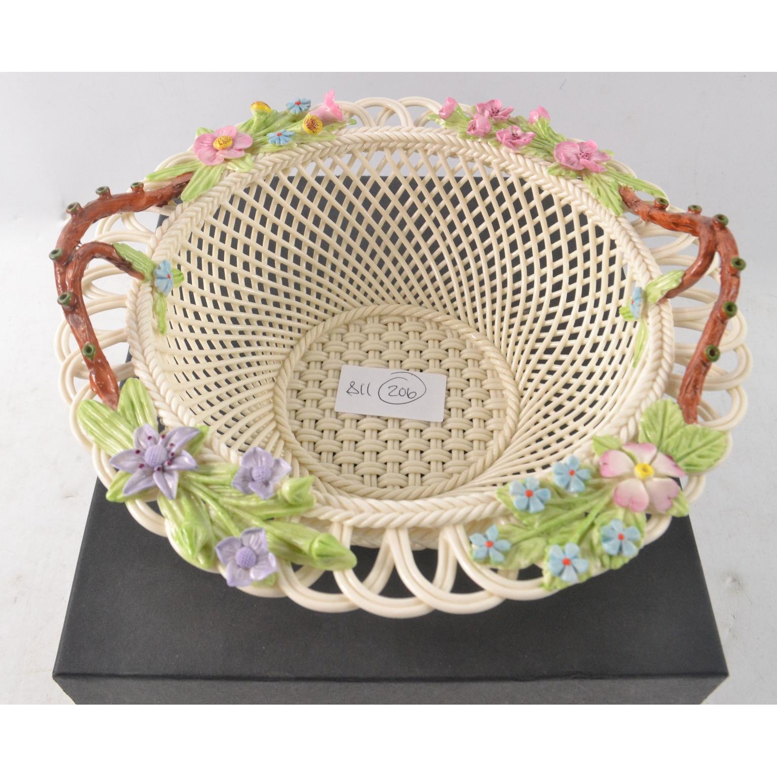 BEAUTIFUL BELEEK Classic Catalina Round pierced style fine porcelain basket - in new condition!H: 7cm approx D: 21cm approx