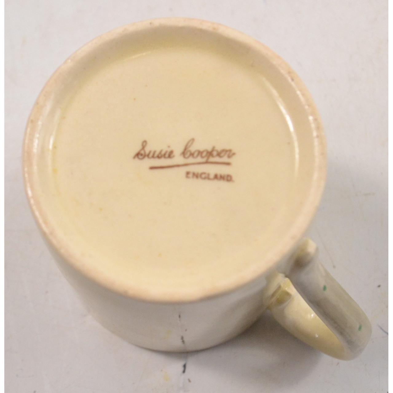 VINTAGE SUSIE COOPER 6 cup coffee set with green leaf and band design on pale yellow backgroundH: Cup: 5.5cm approx Approx 13 pieces