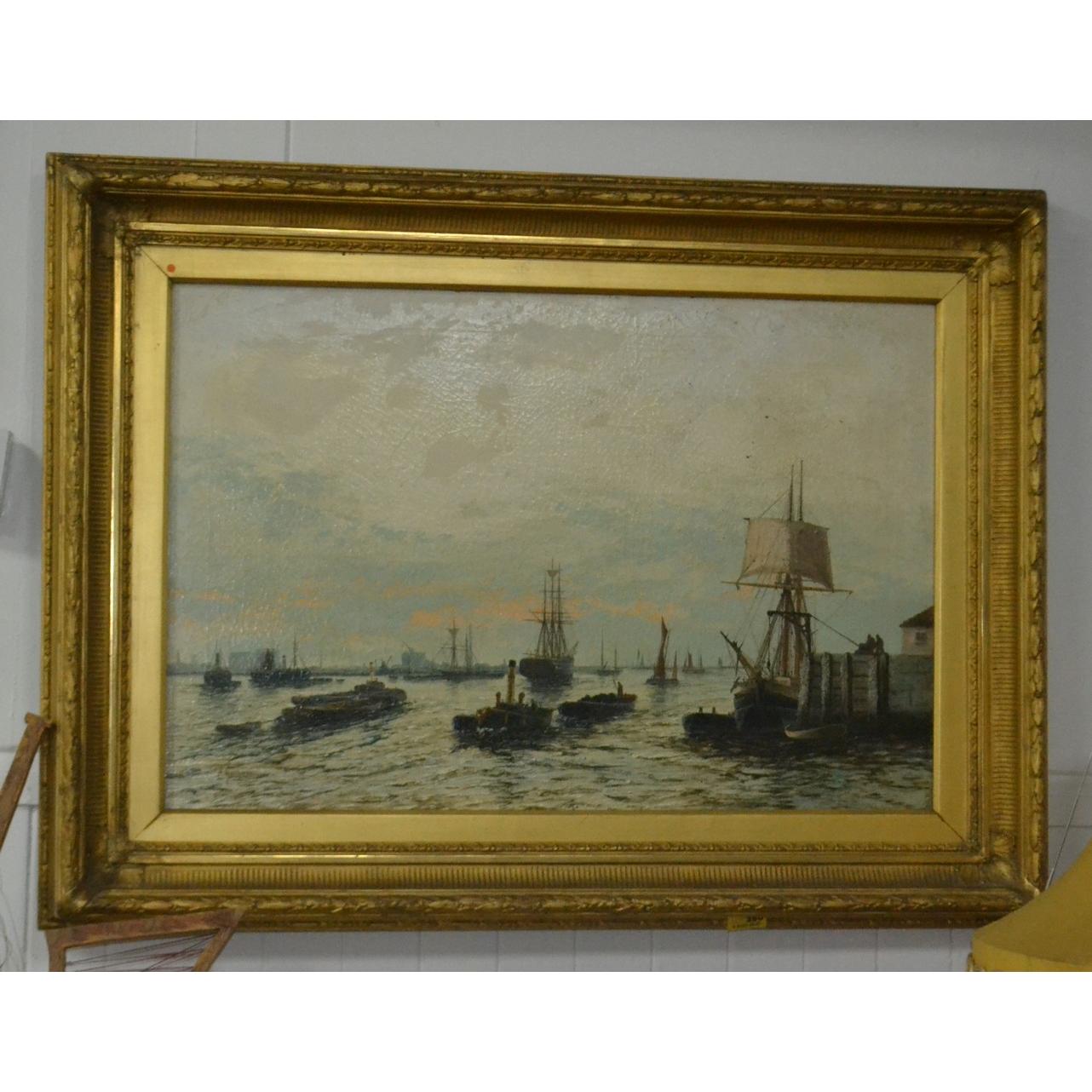 Edwin Henry Eugene Fletcher (1857-1945) oil on canvas entitled 'Barges on The Thames'
