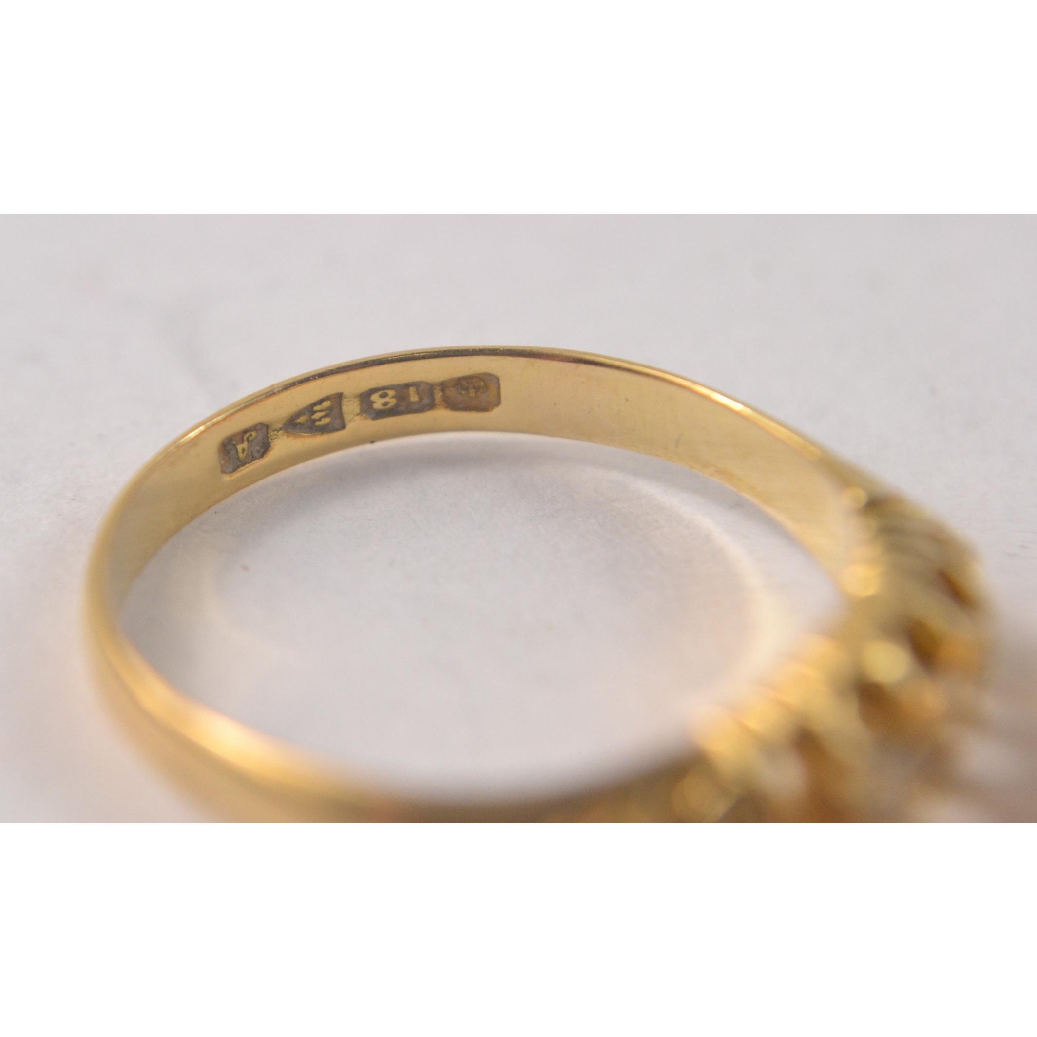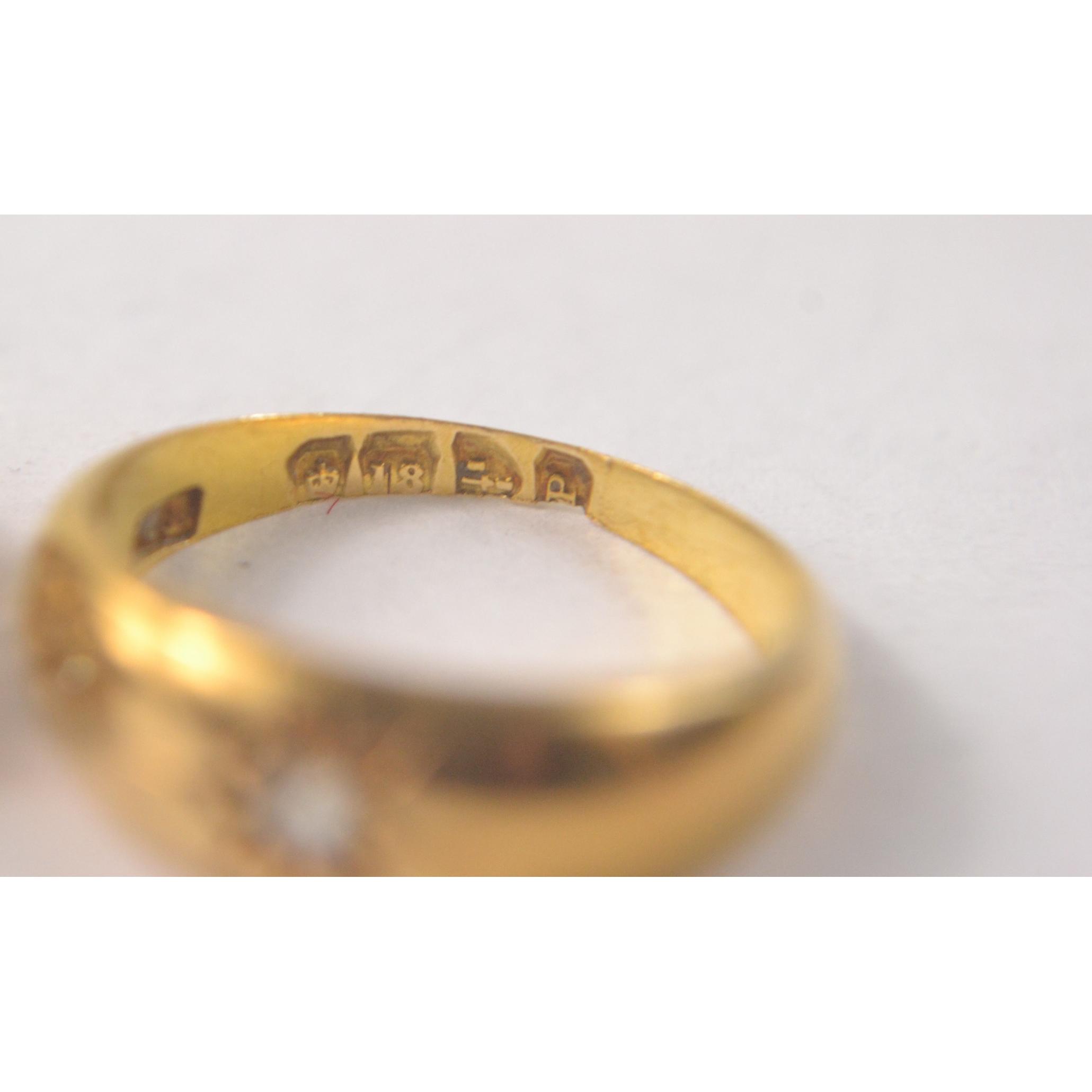 Two 18ct stamped rings both with small diamonds (tested)inset total gross weight is 6.73gGross weight approx 6.73gApprox 2 pieces
