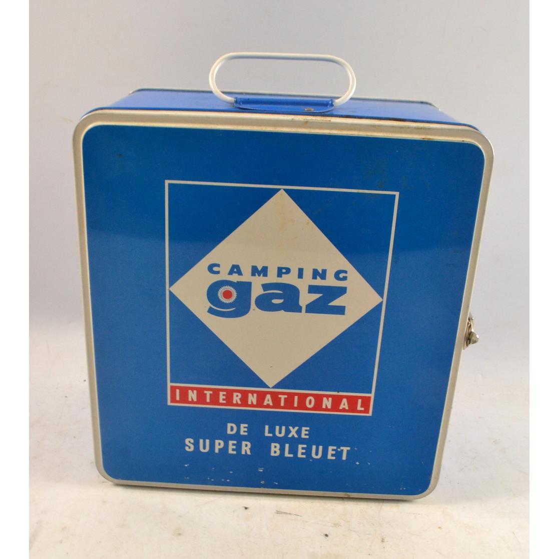 FOR THE KEEN CAMPER! A CAMPING GAZ branded portable tin box containing a stove and GAZ canister