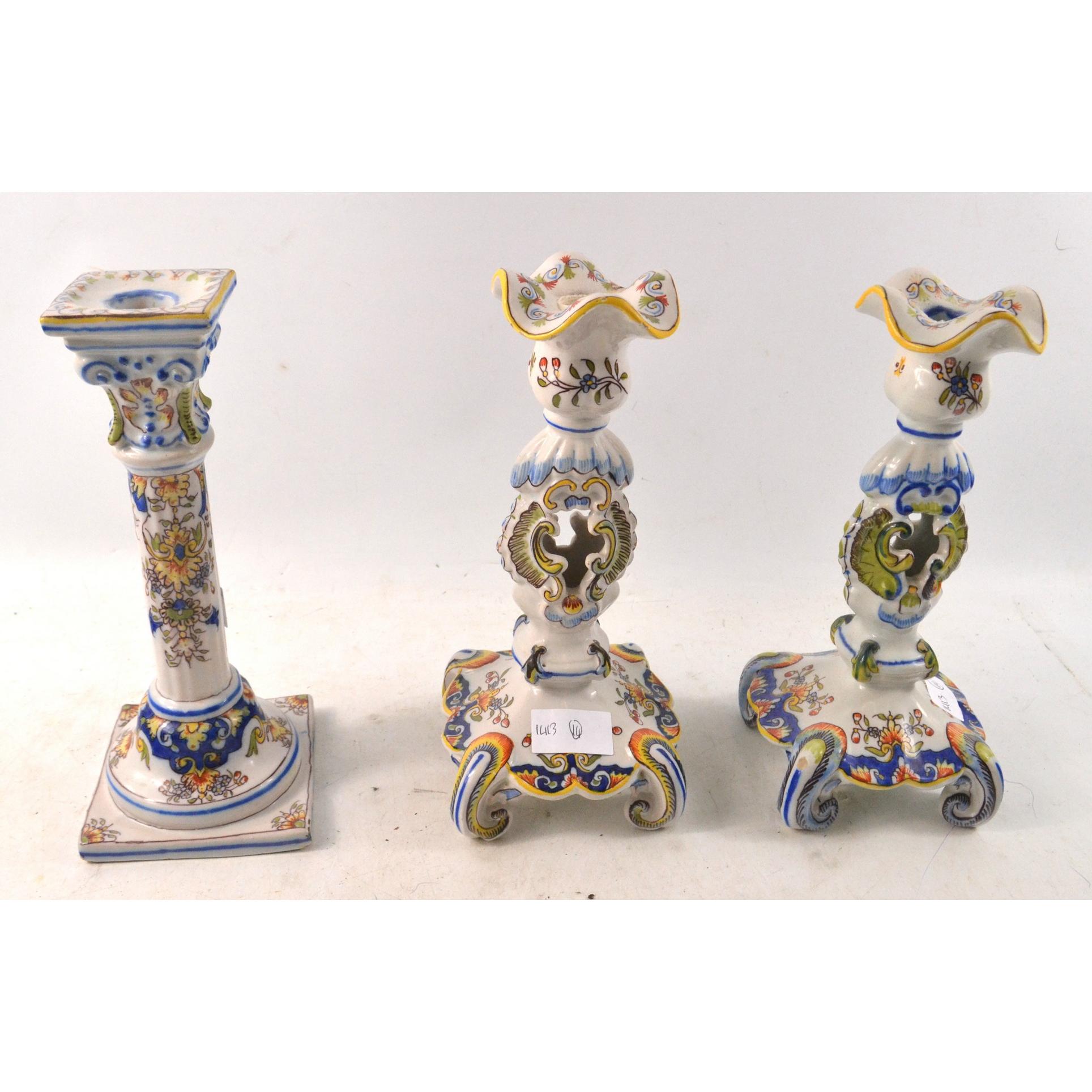 A collection of three MEISON style AUSTRIAN ceramic candle holders 26cm height eachApprox 3 pieces