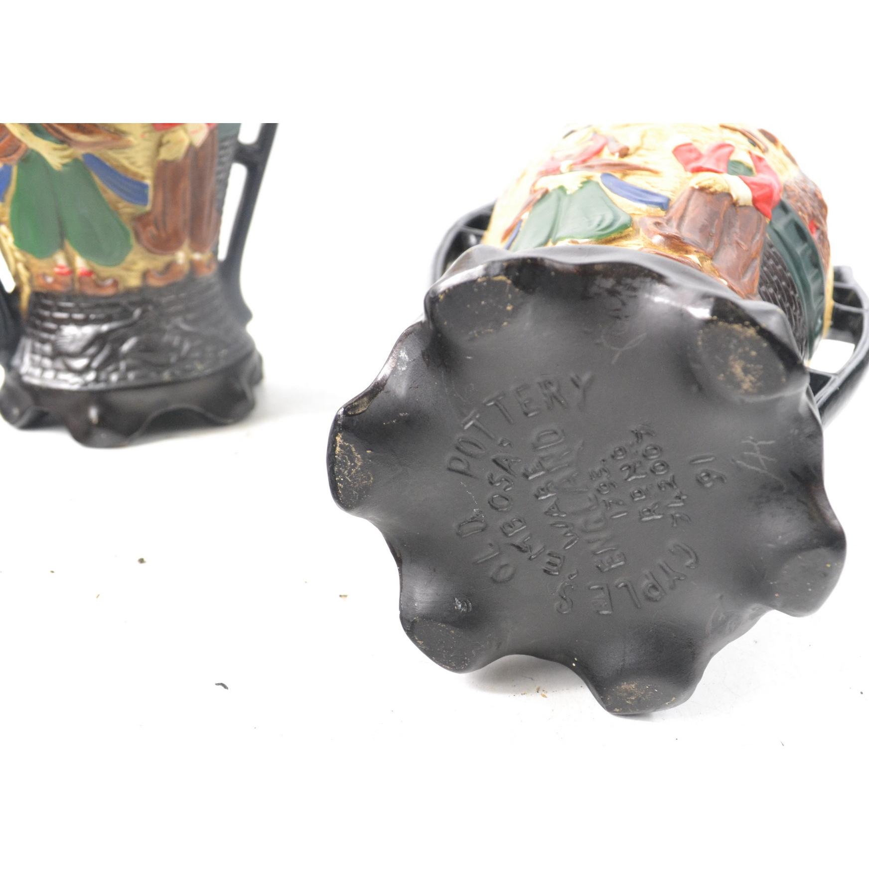 Pair of CYPLES old pottery 'EMBOSA' double handled vases of Dutch scene. Marked 1793 rd no 742007 and 91H: 27cm approx Approx 2 pieces