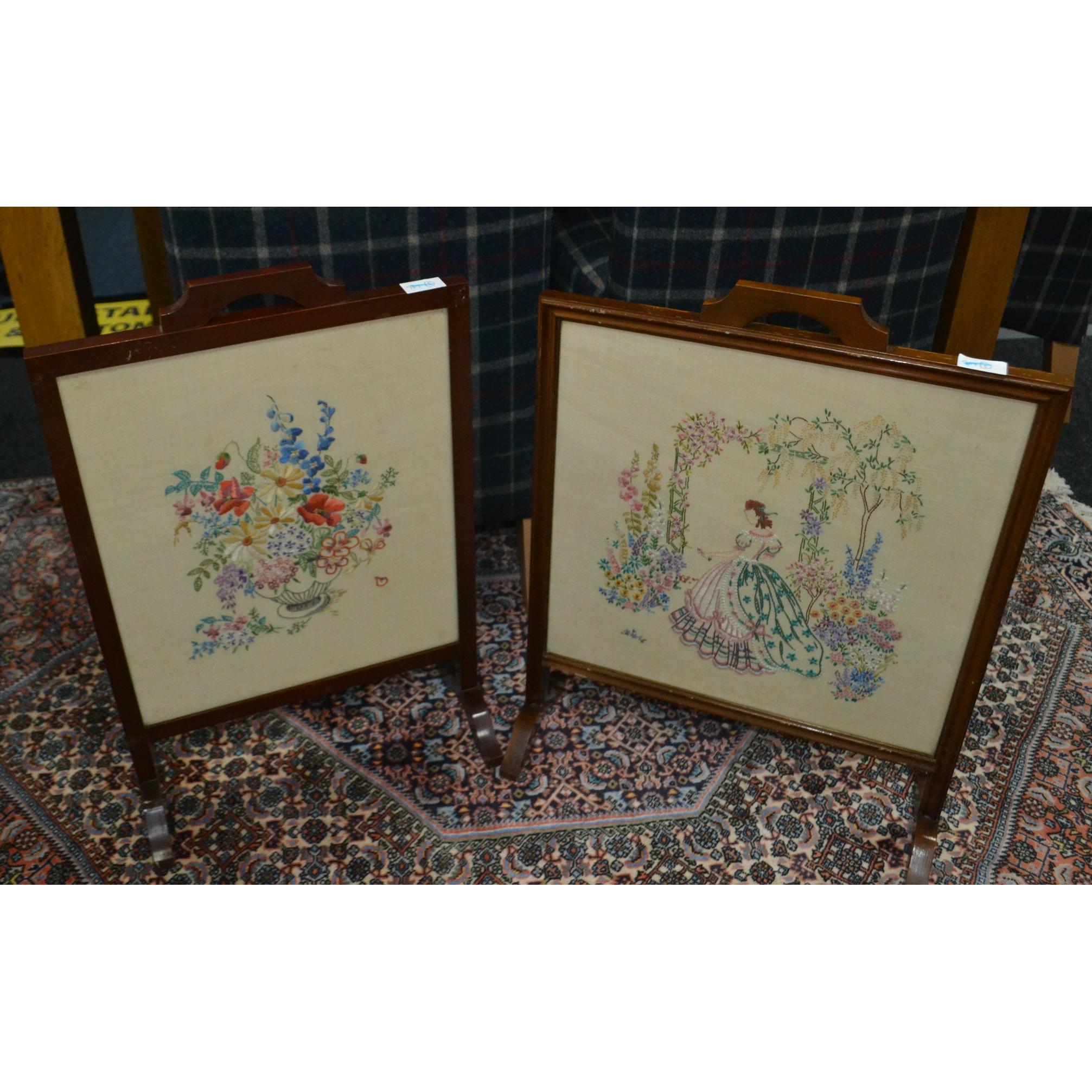 Two embroidered glass covered fire screens c1950’s the larger 45cm x 58cm heightApprox 2 pieces