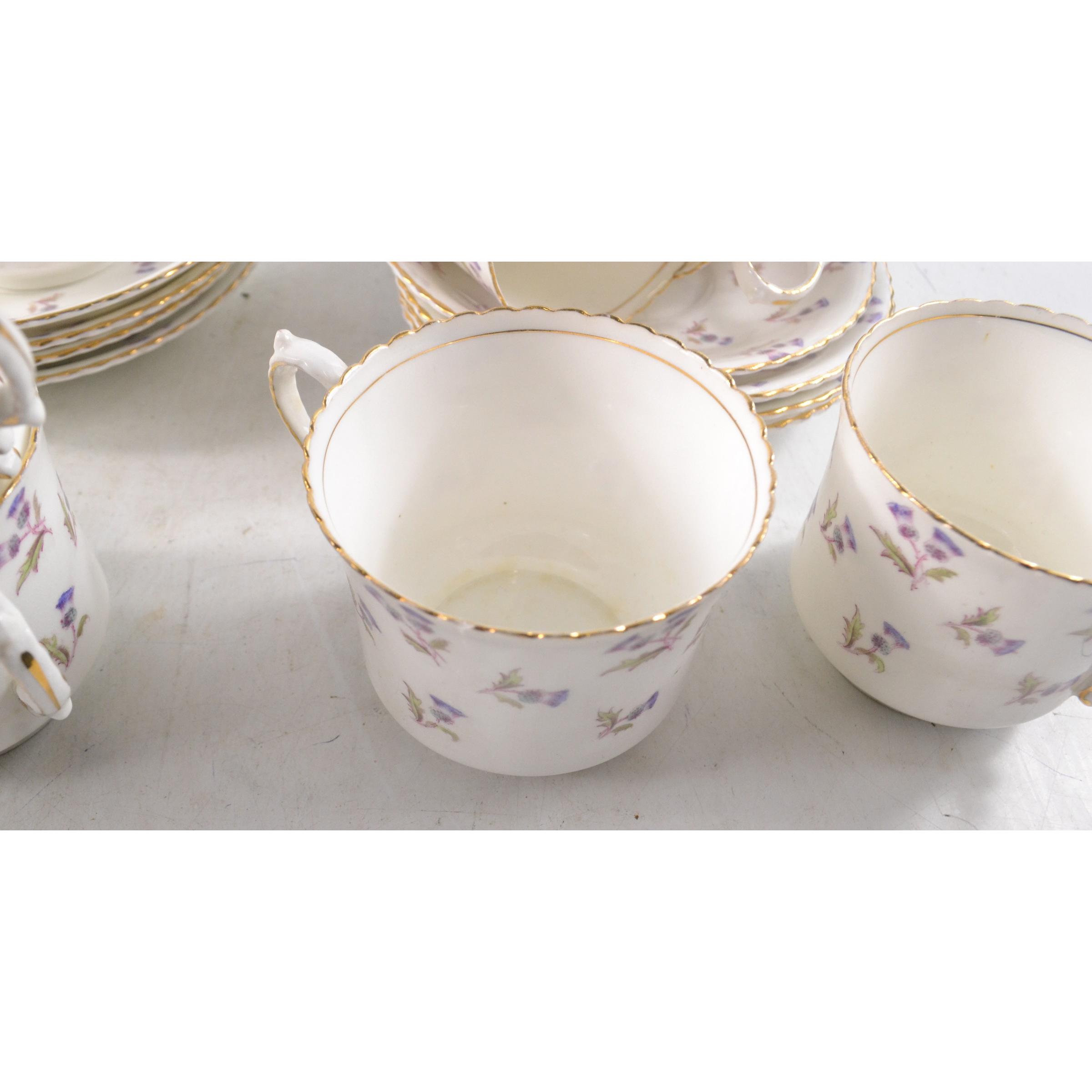 AYNSLEY A full 12cup tea service No 15486 in Scottish Thistle pattern to include two large sandwich plates cream and sugarApprox 40 pieces