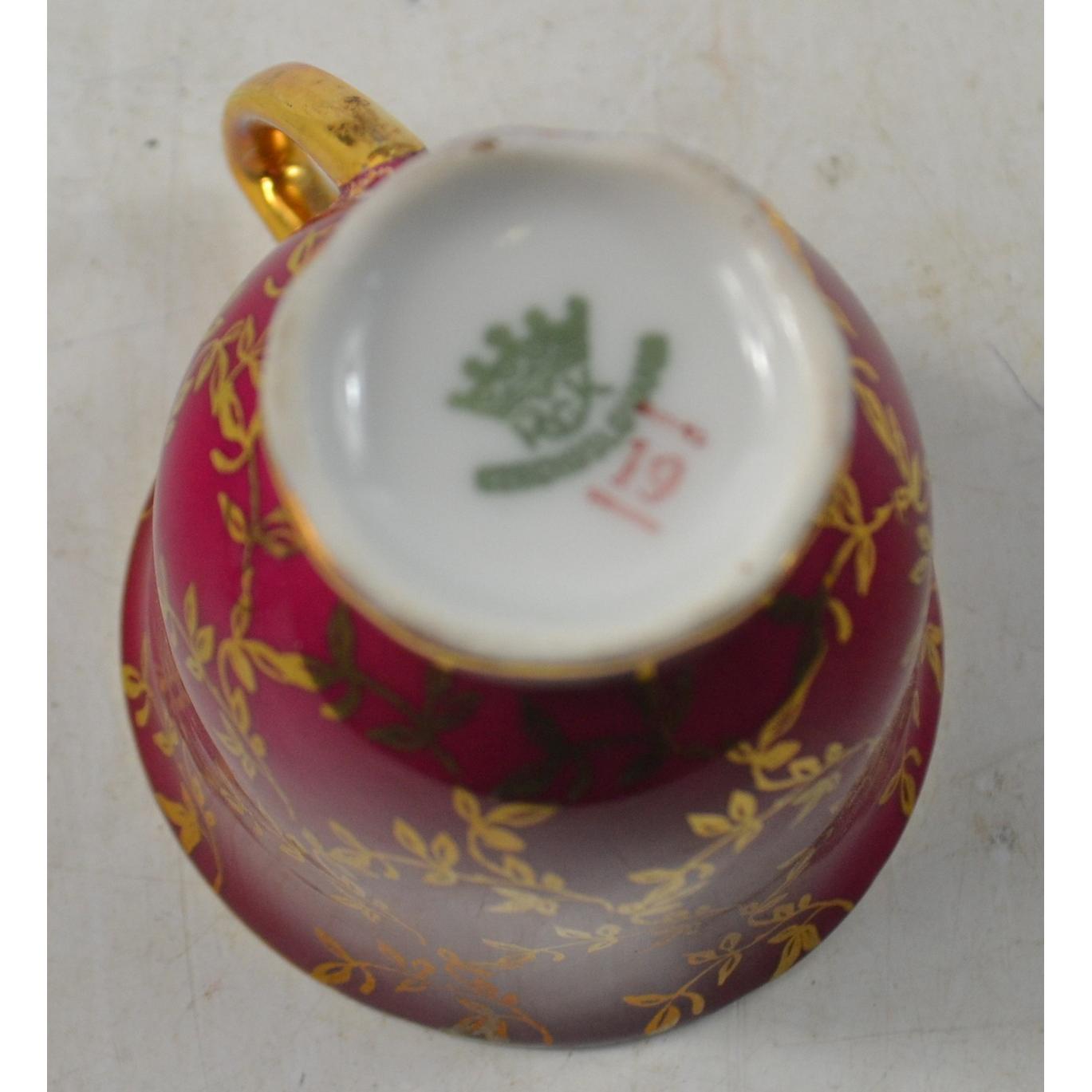 BEAUTIFUL! A nice vintage CZECHOSLOVAKIAN small cup coffee set in six base colours with gold painted design and gold painted inner cups Approx 12 pieces