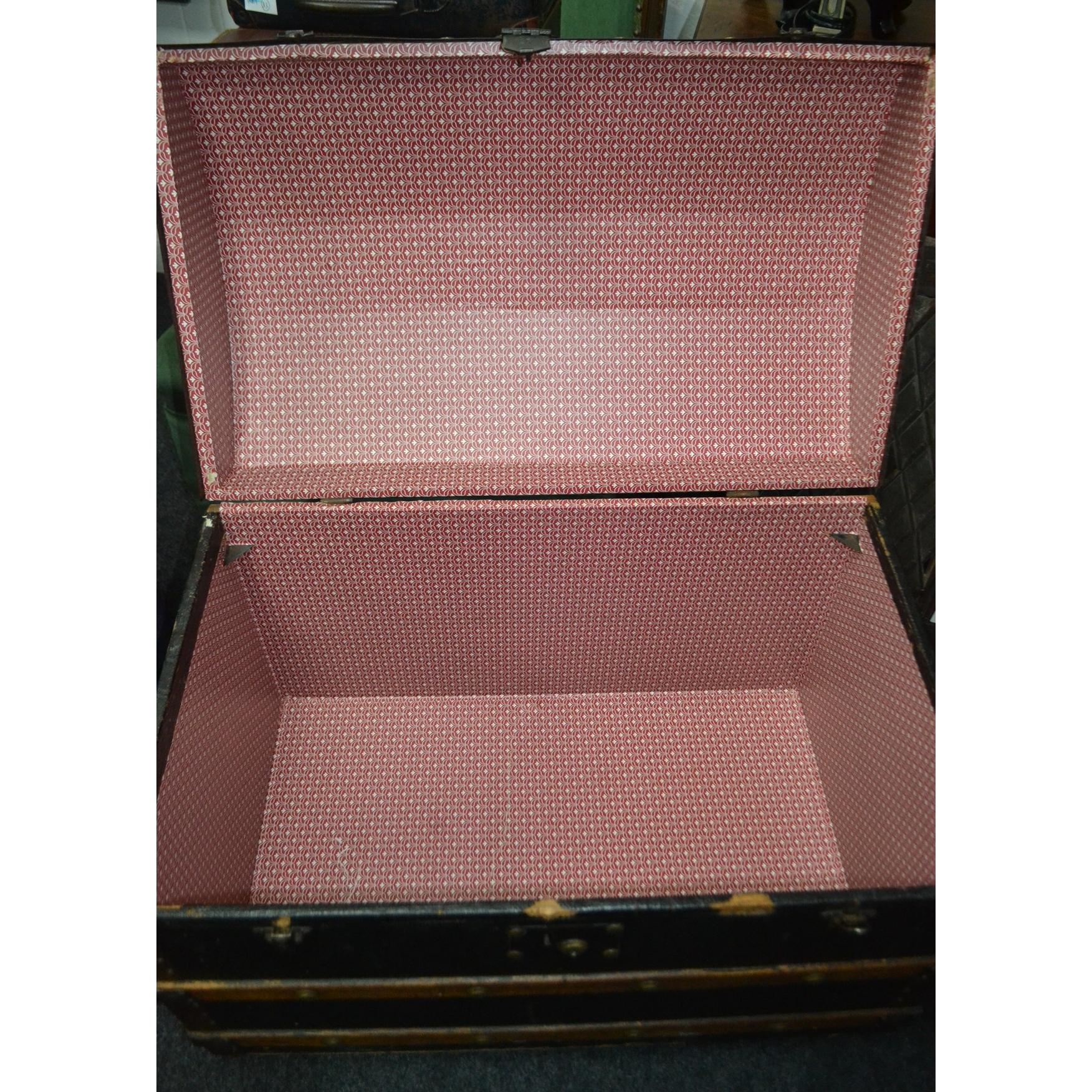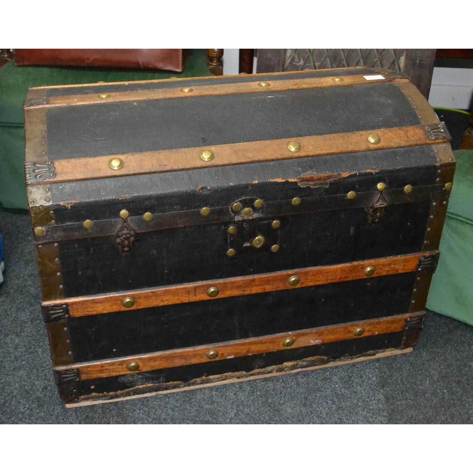 A VINTAGE large domed steamer trunk of the HIGHEST QUALITY! With a nice clean lining and quality metal and brass metal fittings etcL: 75cm approx W: 59cm approx H: 55cm approx