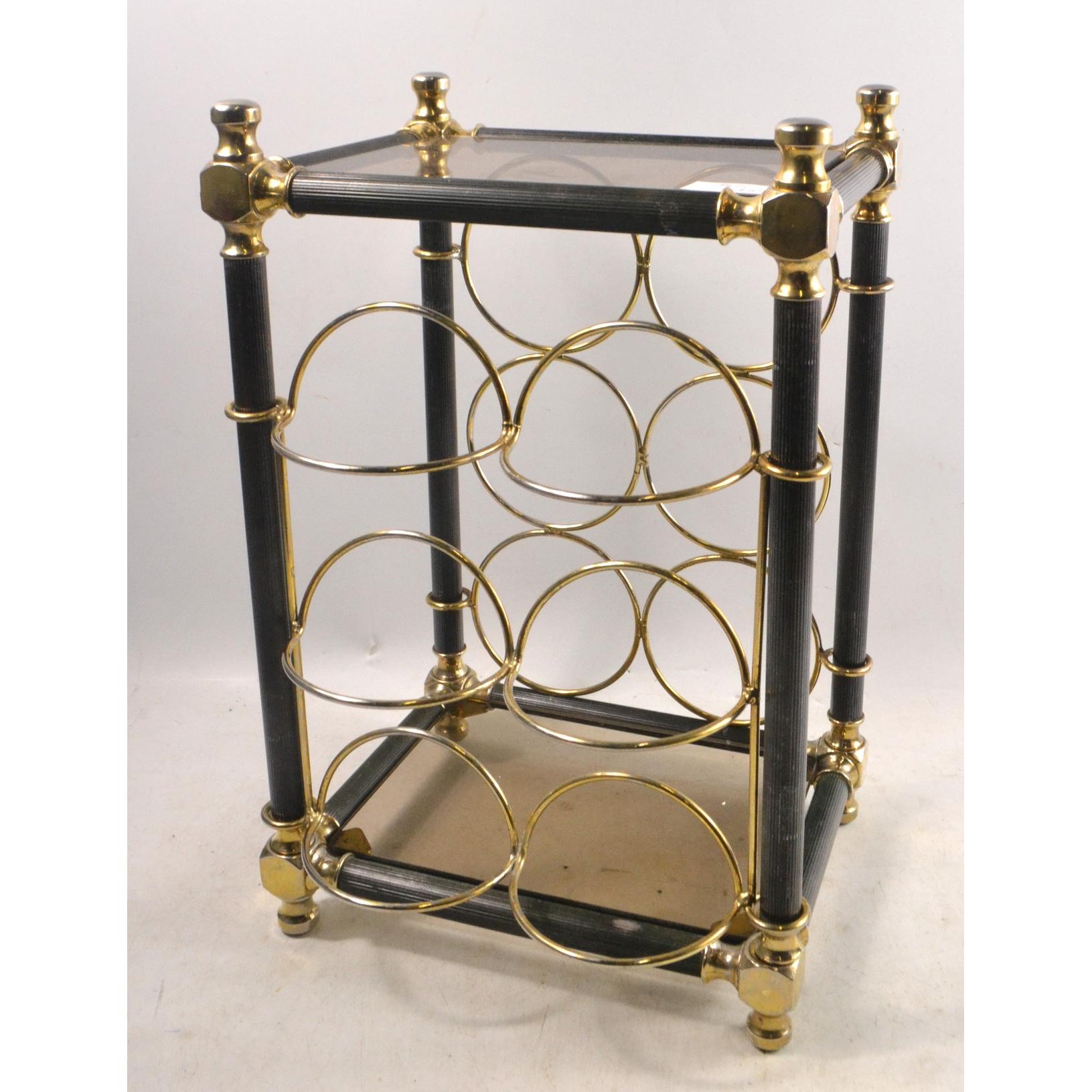 HIGHLY COLLECTABLE ! Retro 1970's Italian good quality 6 bottle brass and metal wine rack with 2 removal glass shelvesW: 26cm approx H: 42cm approx D: 20cm approx