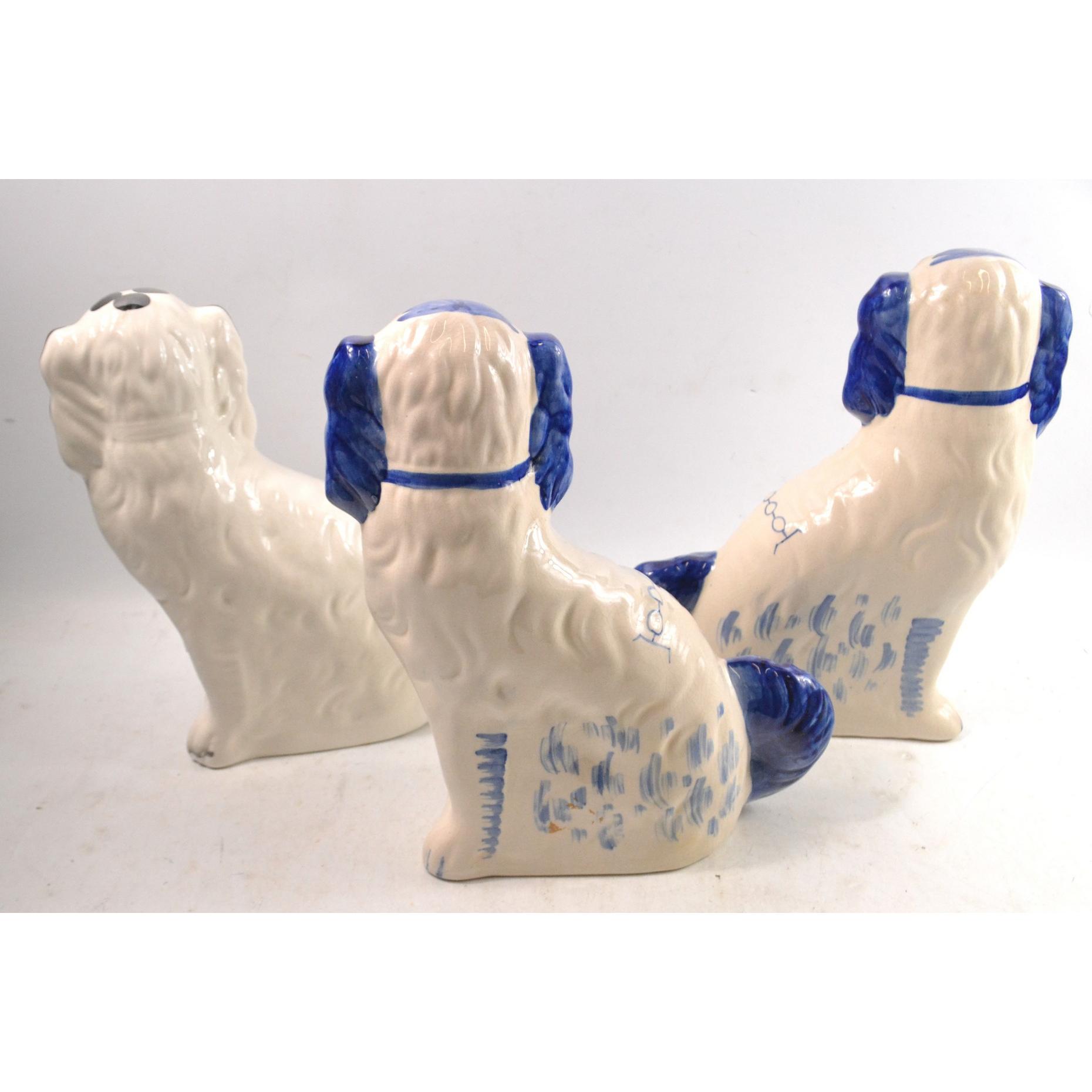 A pair of ceramic Vintage WALLY DOGS in blue and white and one other in black and white all 39cm height approx H: 30cm approx Approx 3 pieces