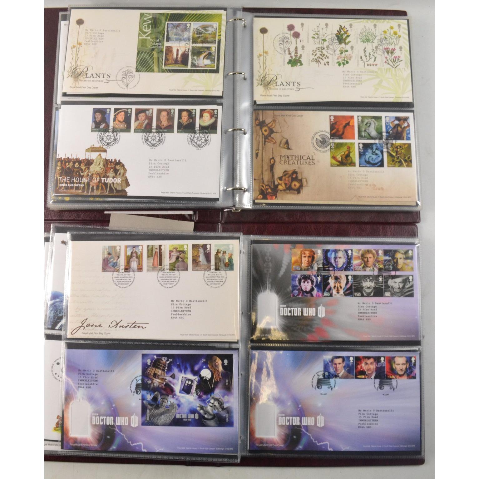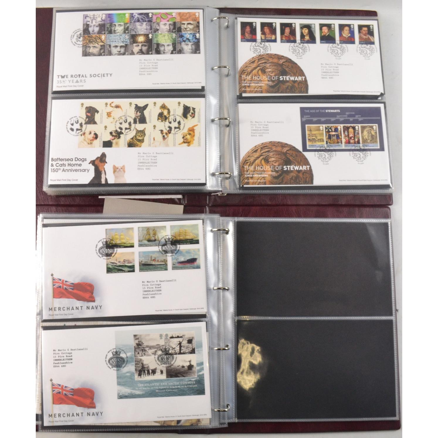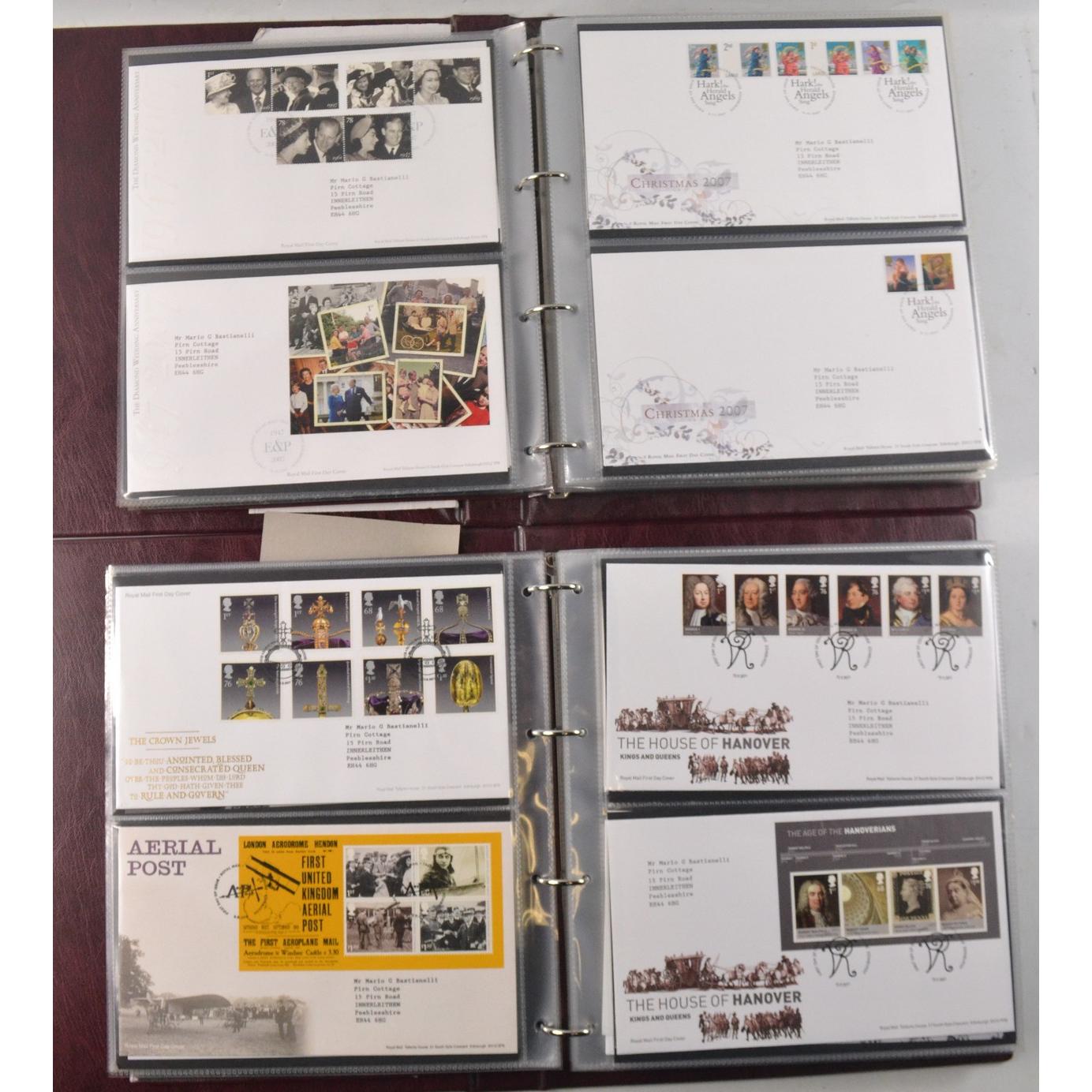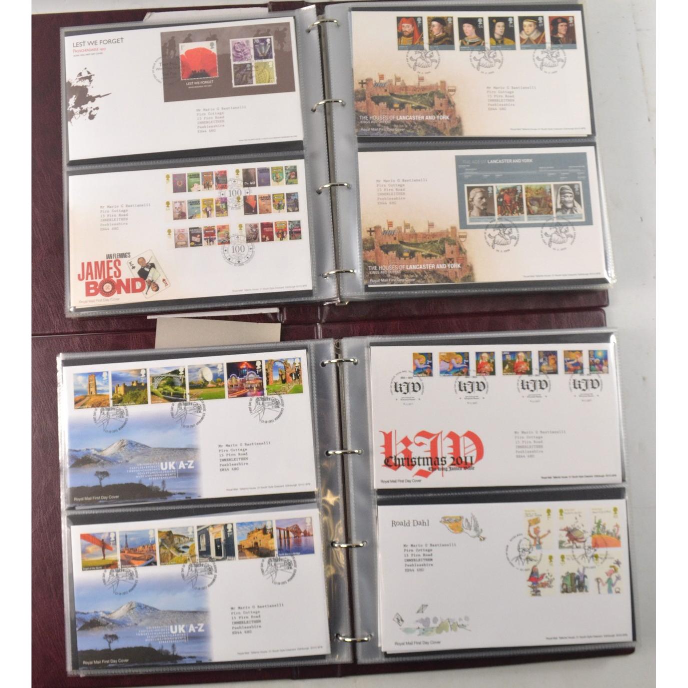 Two books of Royal Mail First Day Covers, to include The Royal Wedding of Prince William and Cathrine Middleton, The House of Hanover, Christmas 2012, and Football Heroes, Harry Potter, Darwin, and Winnie the Pooh.
