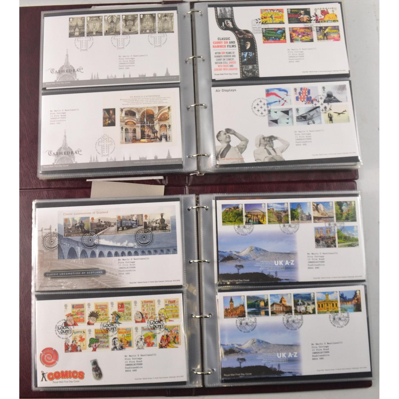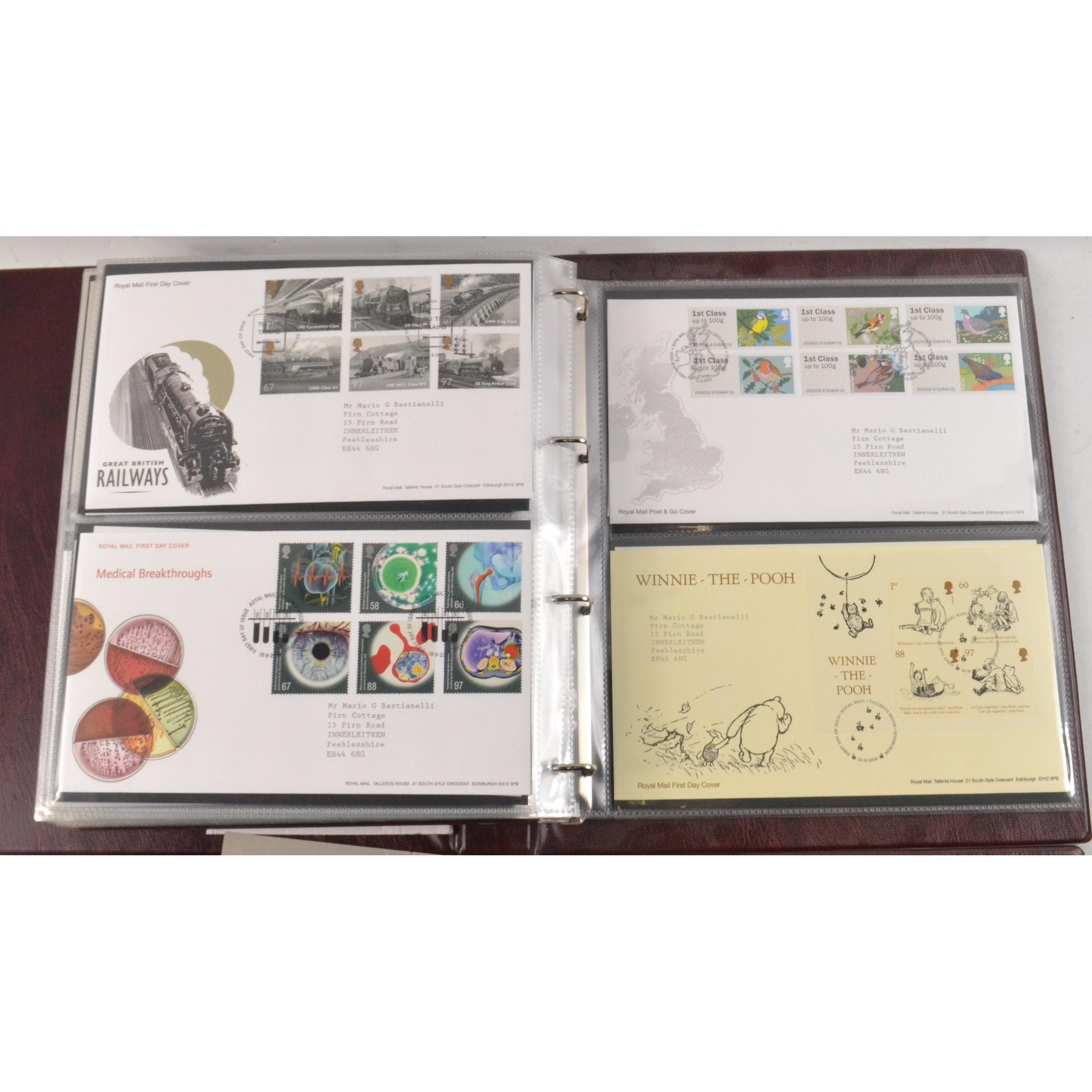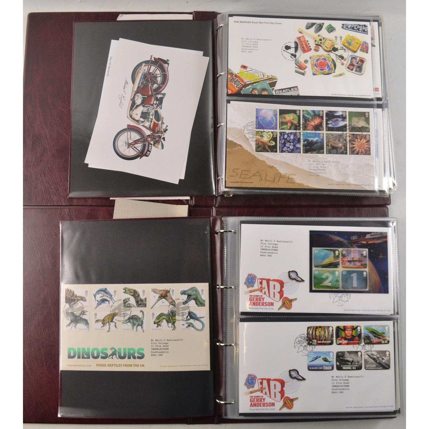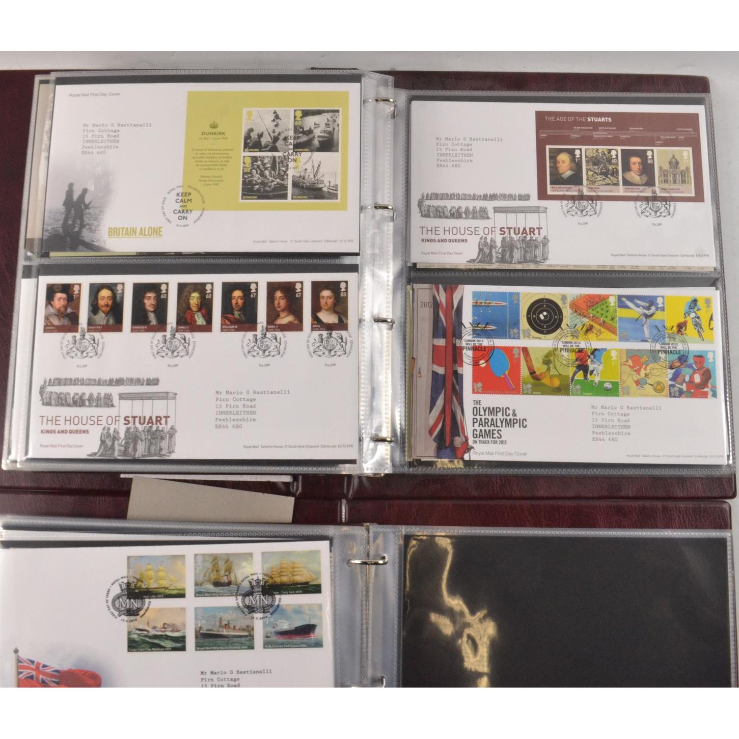 Two books of Royal Mail First Day Covers, to include The Royal Wedding of Prince William and Cathrine Middleton, The House of Hanover, Christmas 2012, and Football Heroes, Harry Potter, Darwin, and Winnie the Pooh.